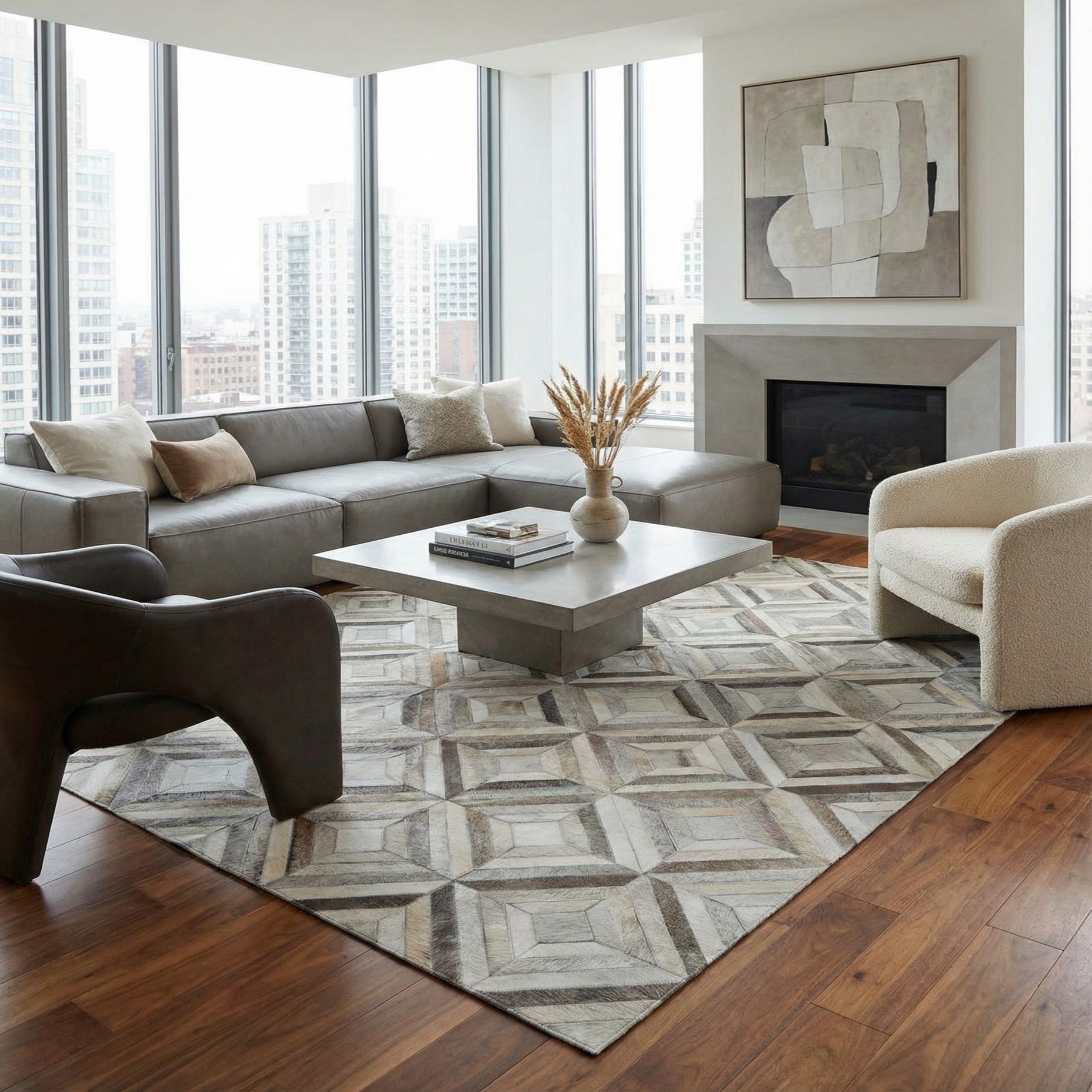 Primary image 4' 7 x 7' 1 Cowhide Leather Rug