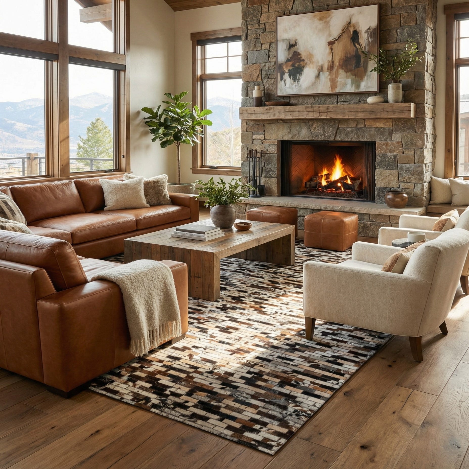 Primary image 5' x 7' 10 Cowhide Leather Rug