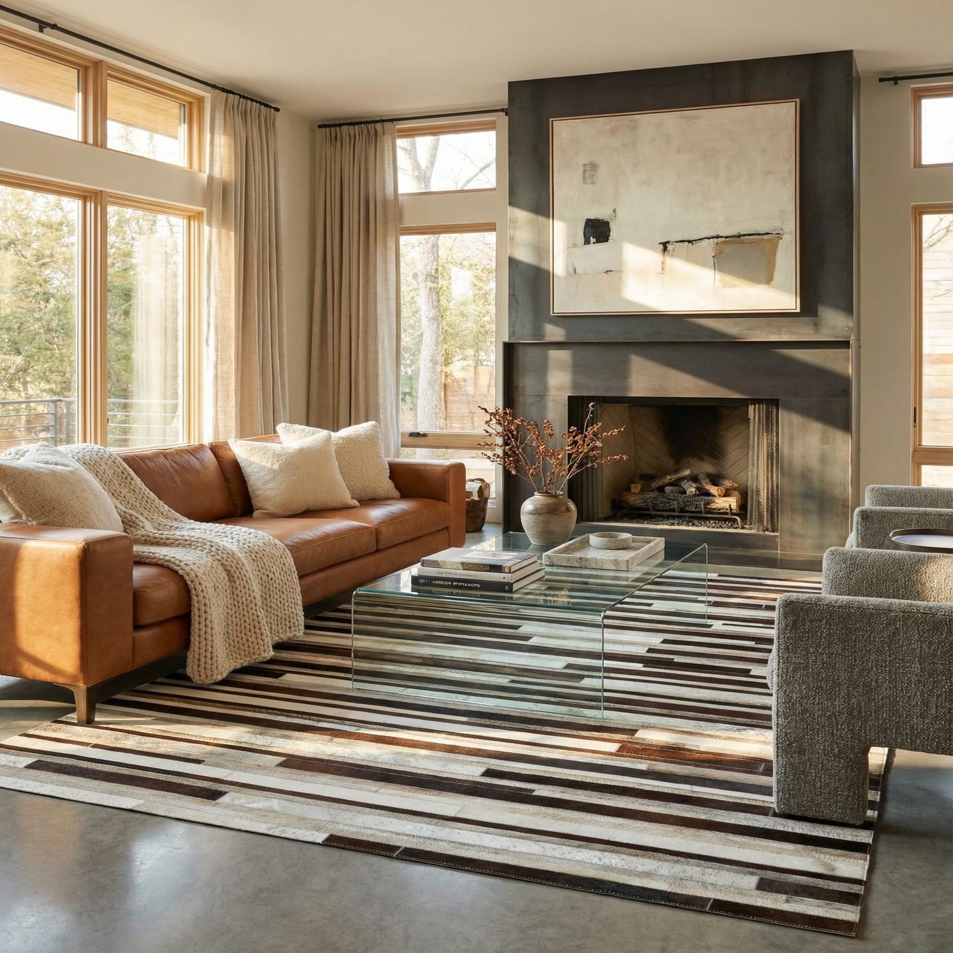Primary image 5' 1 x 8' Cowhide Leather Rug