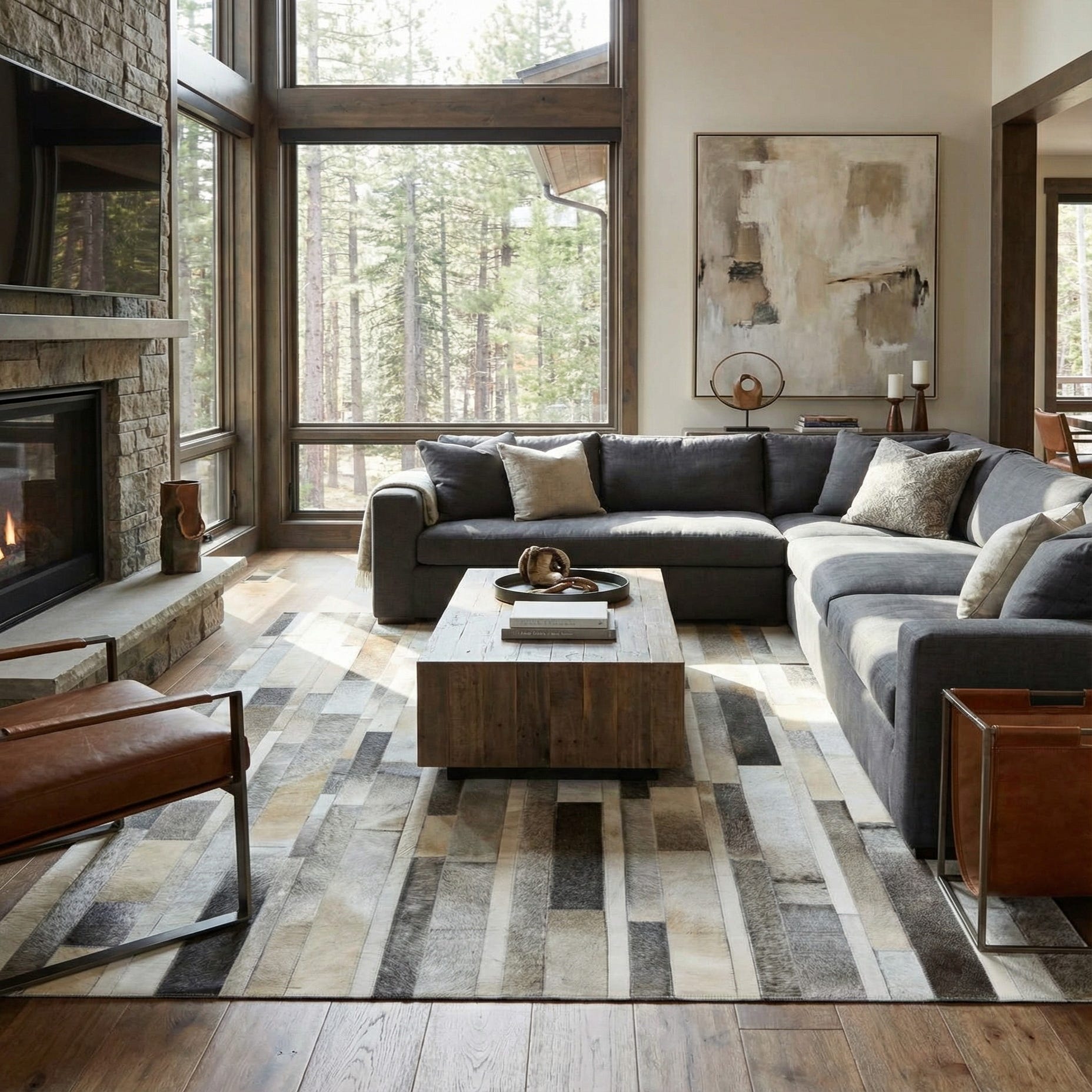 5' 6 x 7' 7 Cowhide Leather Rug