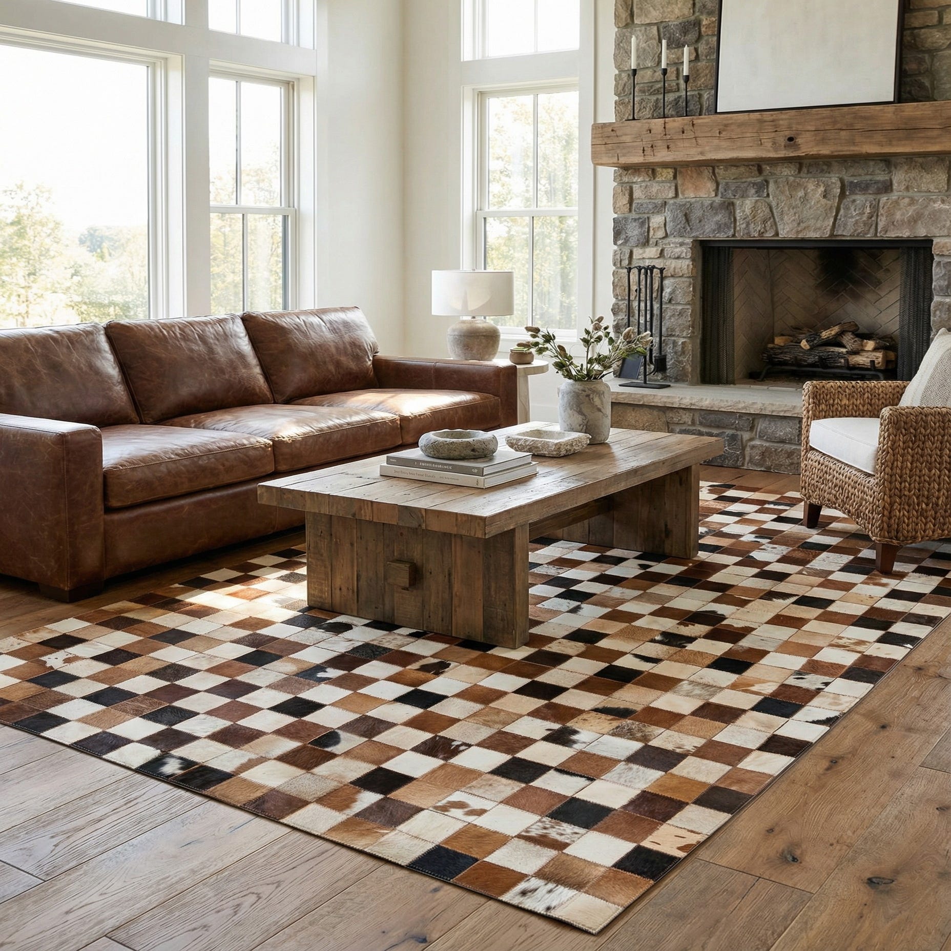 5' 1 x 8' 1 Cowhide Leather Rug
