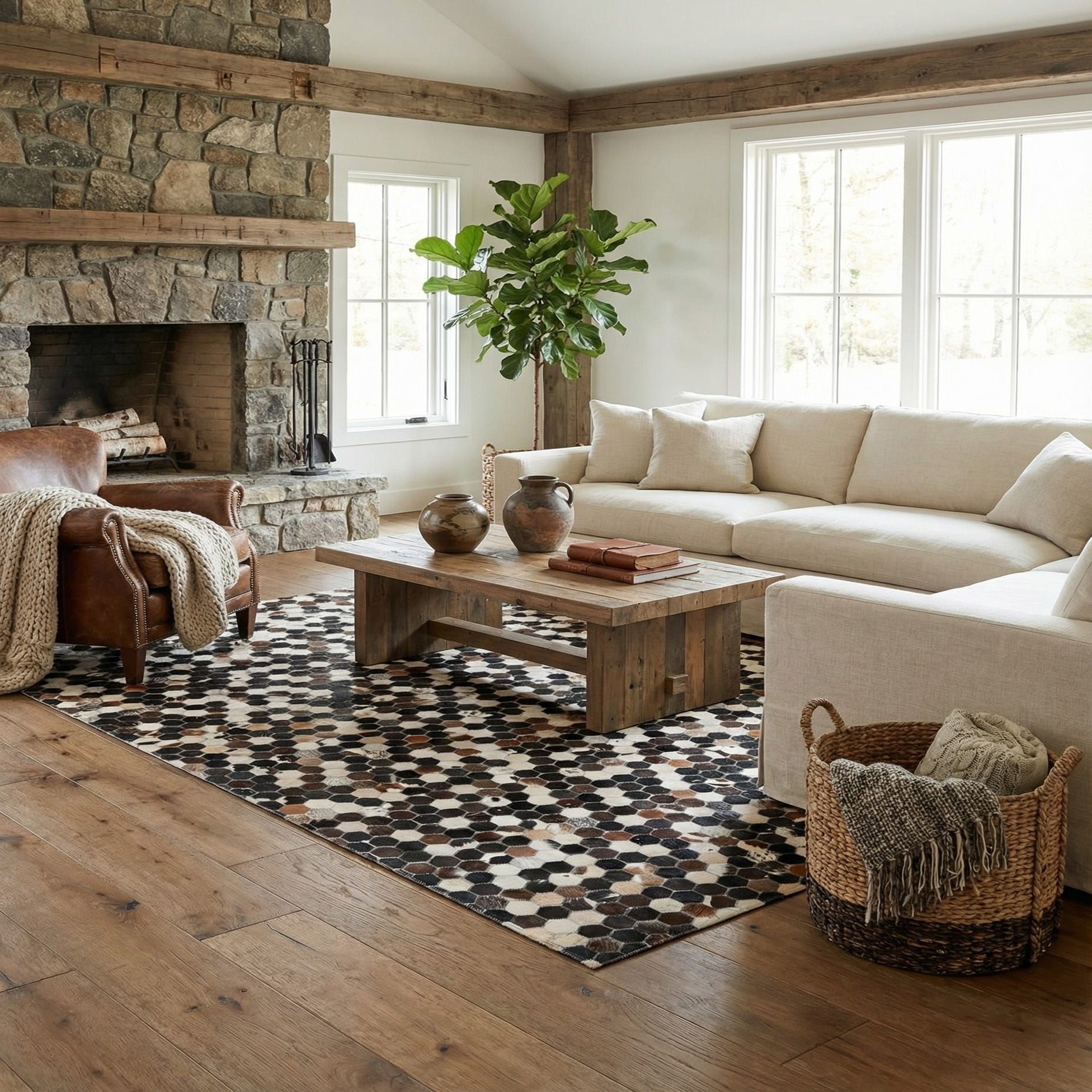 5' 2 x 7' 9 Cowhide Leather Rug