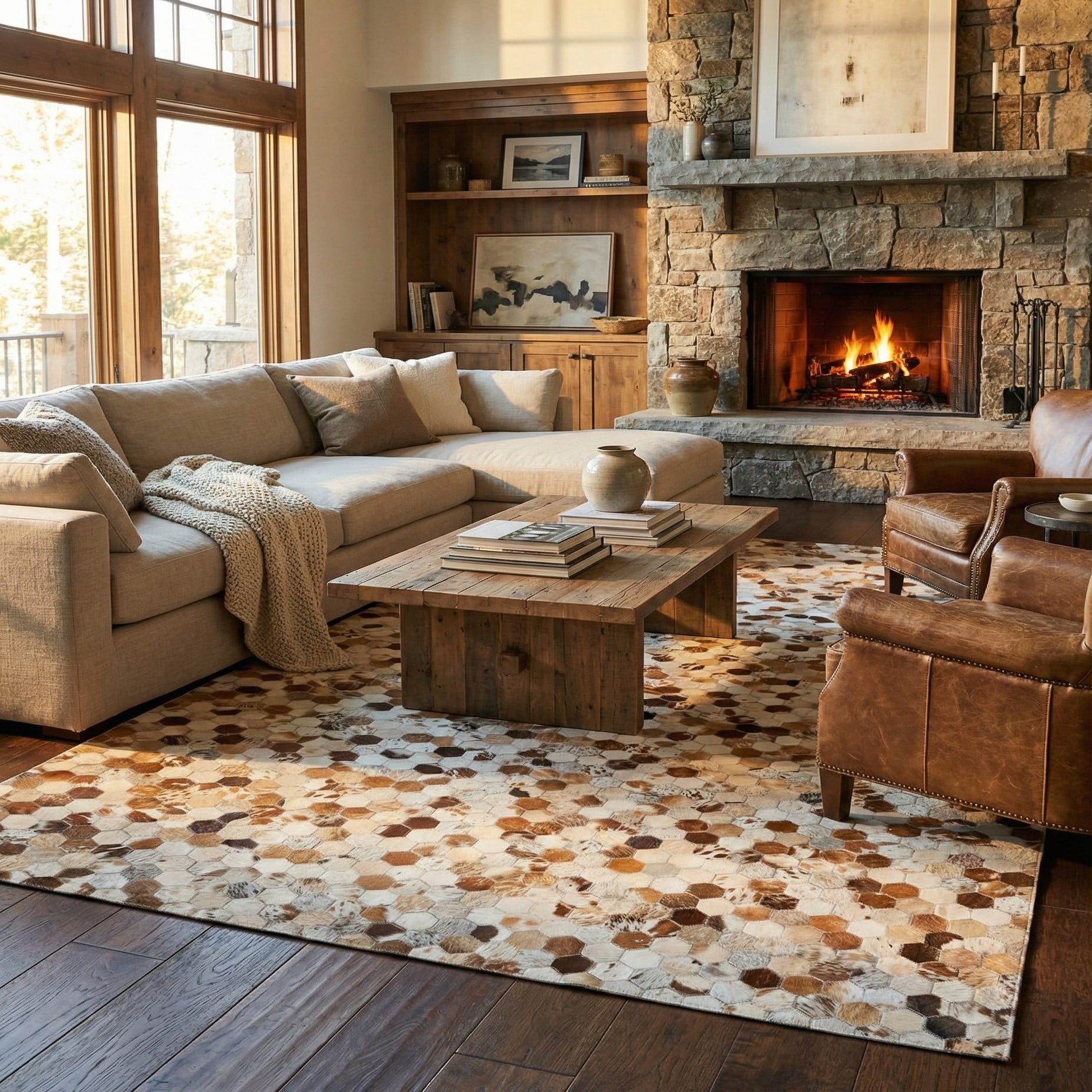 Detail image of 5' 1 x 8' Cowhide Leather Rug