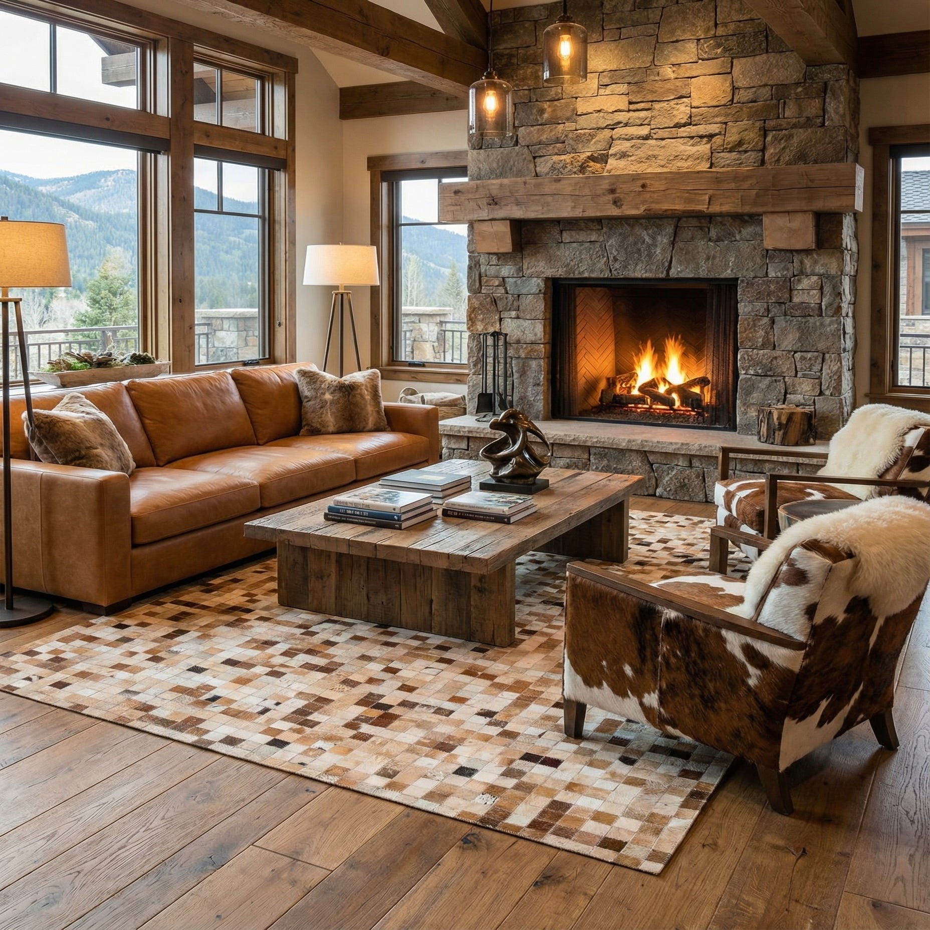 5' x 8' 1 Cowhide Leather Rug