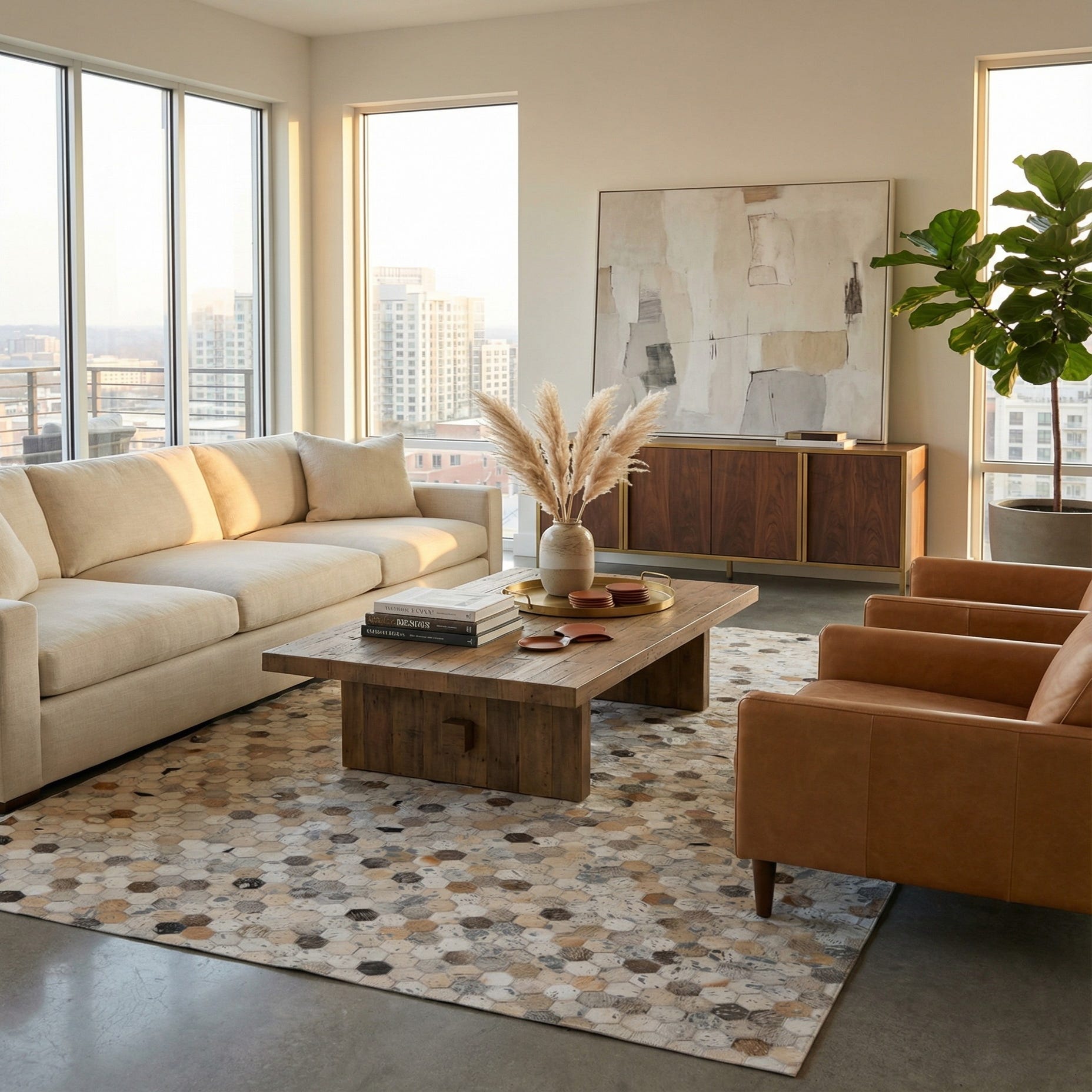 Detail image of 5' x 8' Cowhide Stocks Rug
