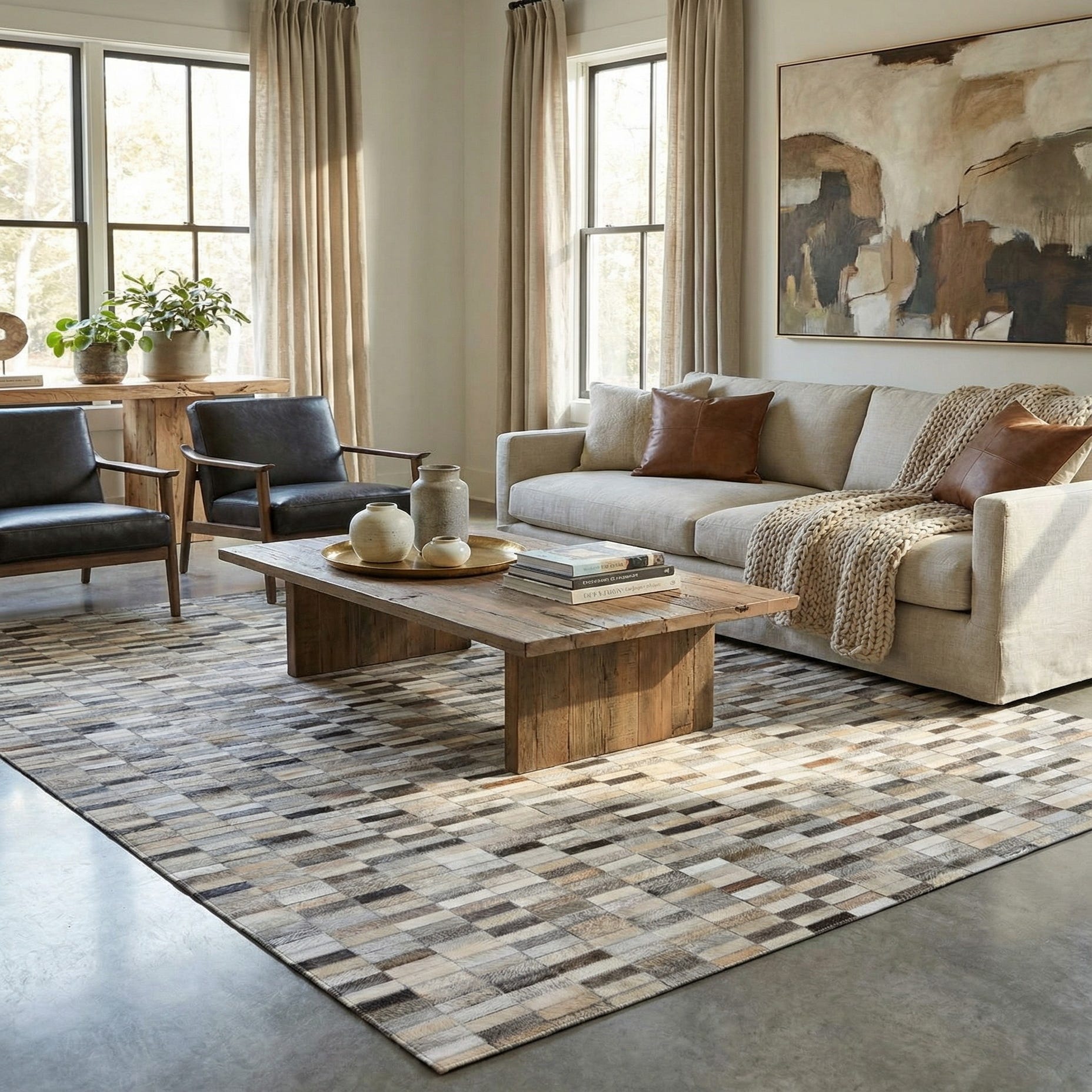 Detail image of 5' 3 x 8' Cowhide Stocks Rug