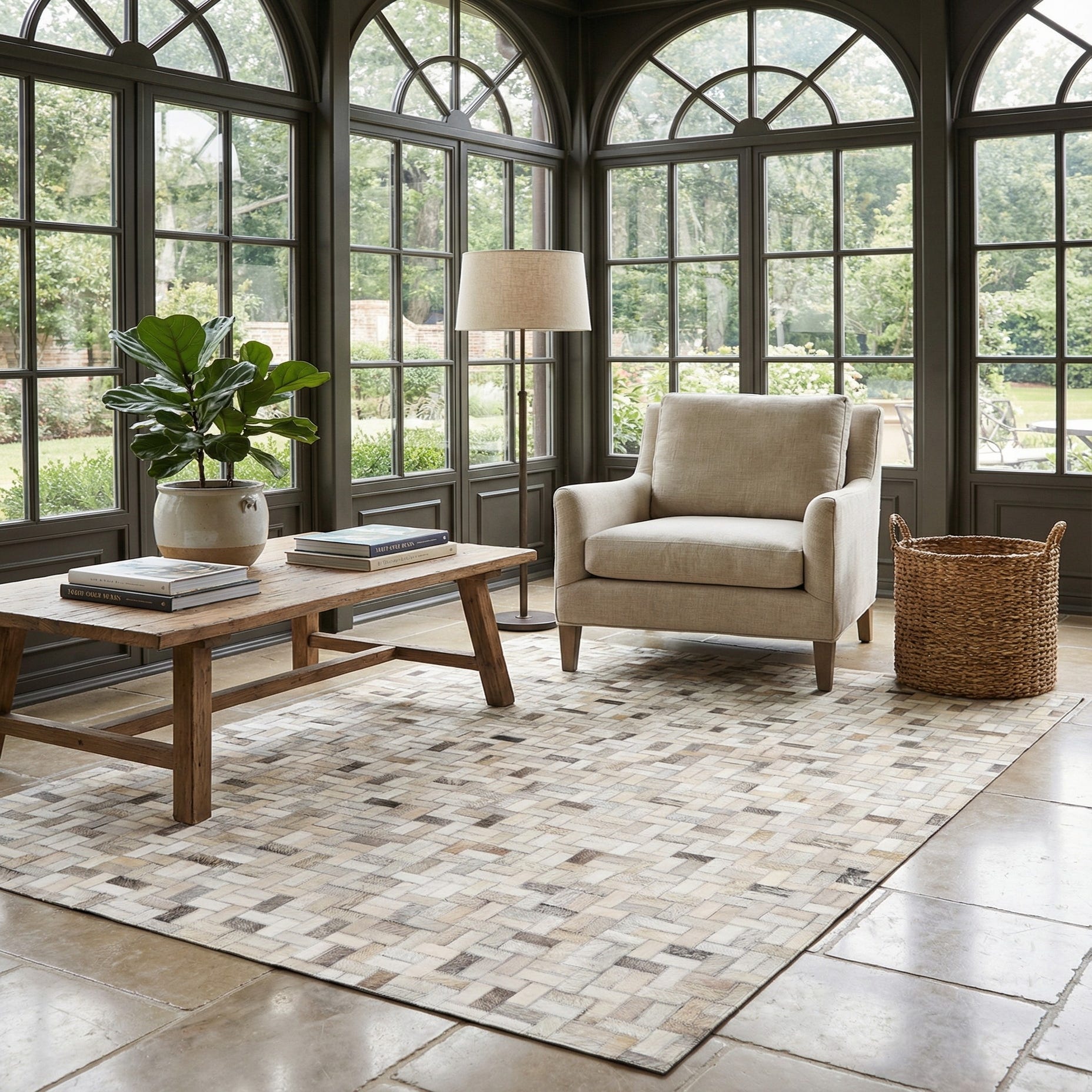 Detail image of 4' 7 x 6' 6 Cowhide Stocks Rug