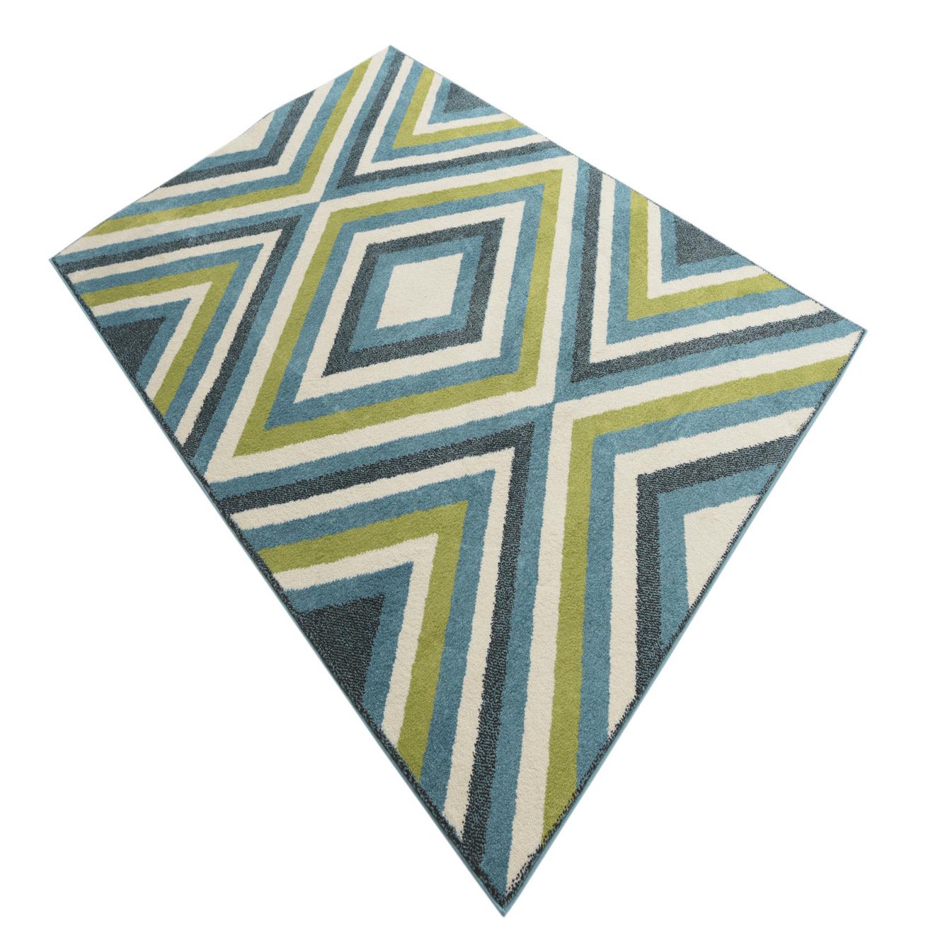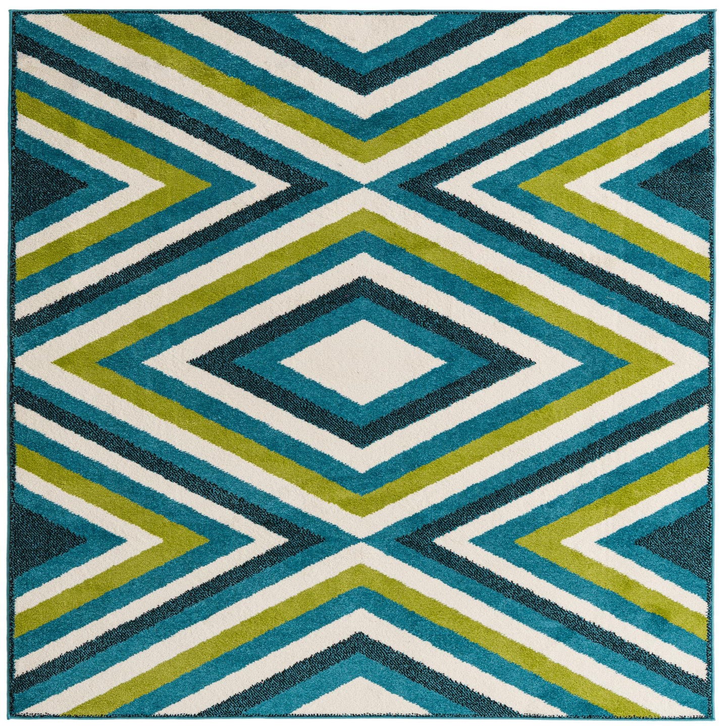 Primary color is Multi. Colors in this rug include: Multi, Blue, Ivory, Navy Blue, Green.