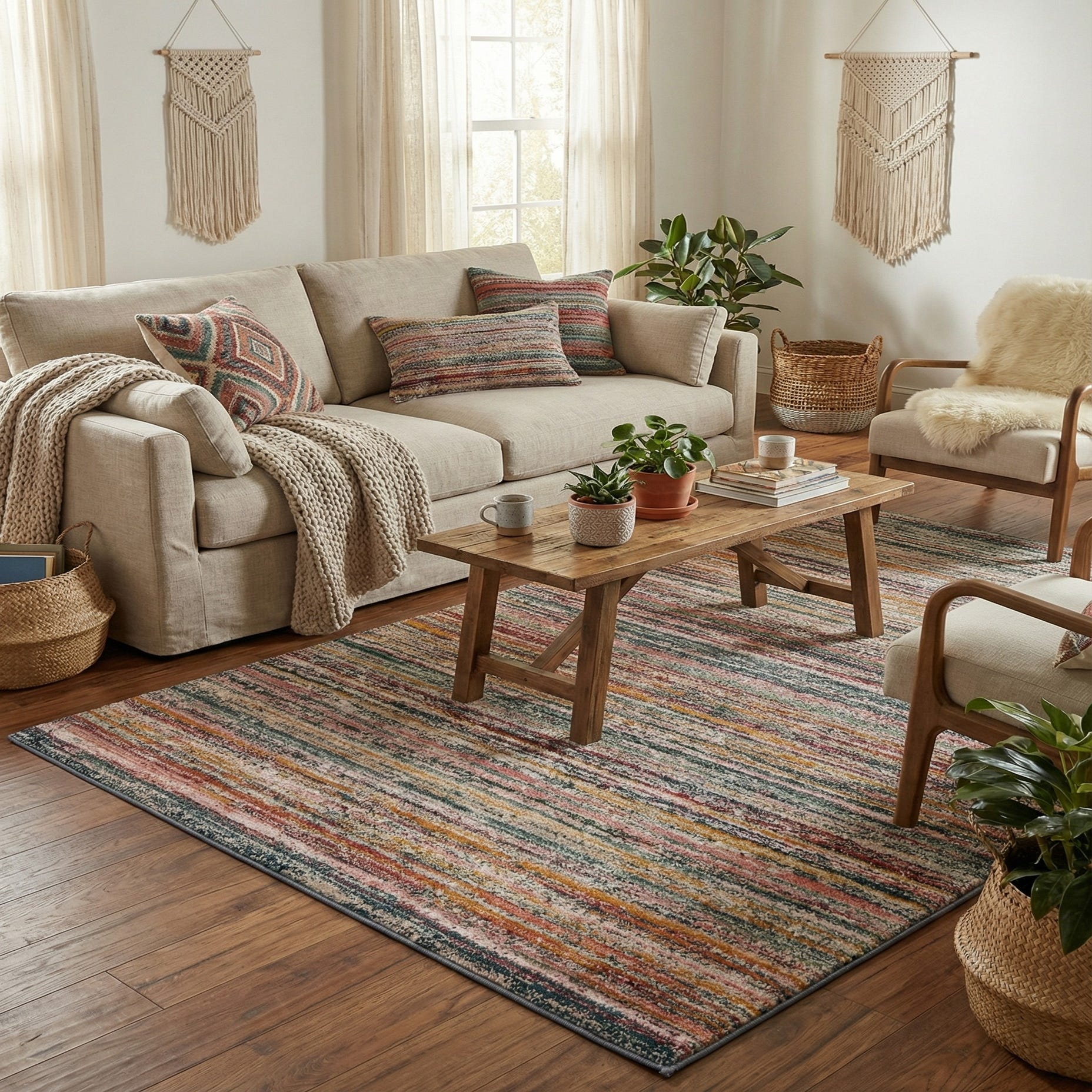 Primary color is Multi. Colors in this rug include: Multi, Beige, Blue, Brown, Red, Rust Red, Pink, Violet, Navy Blue, Light Blue, Light Brown, Light Green, Light Salmon, Peach, Olive, Orange.