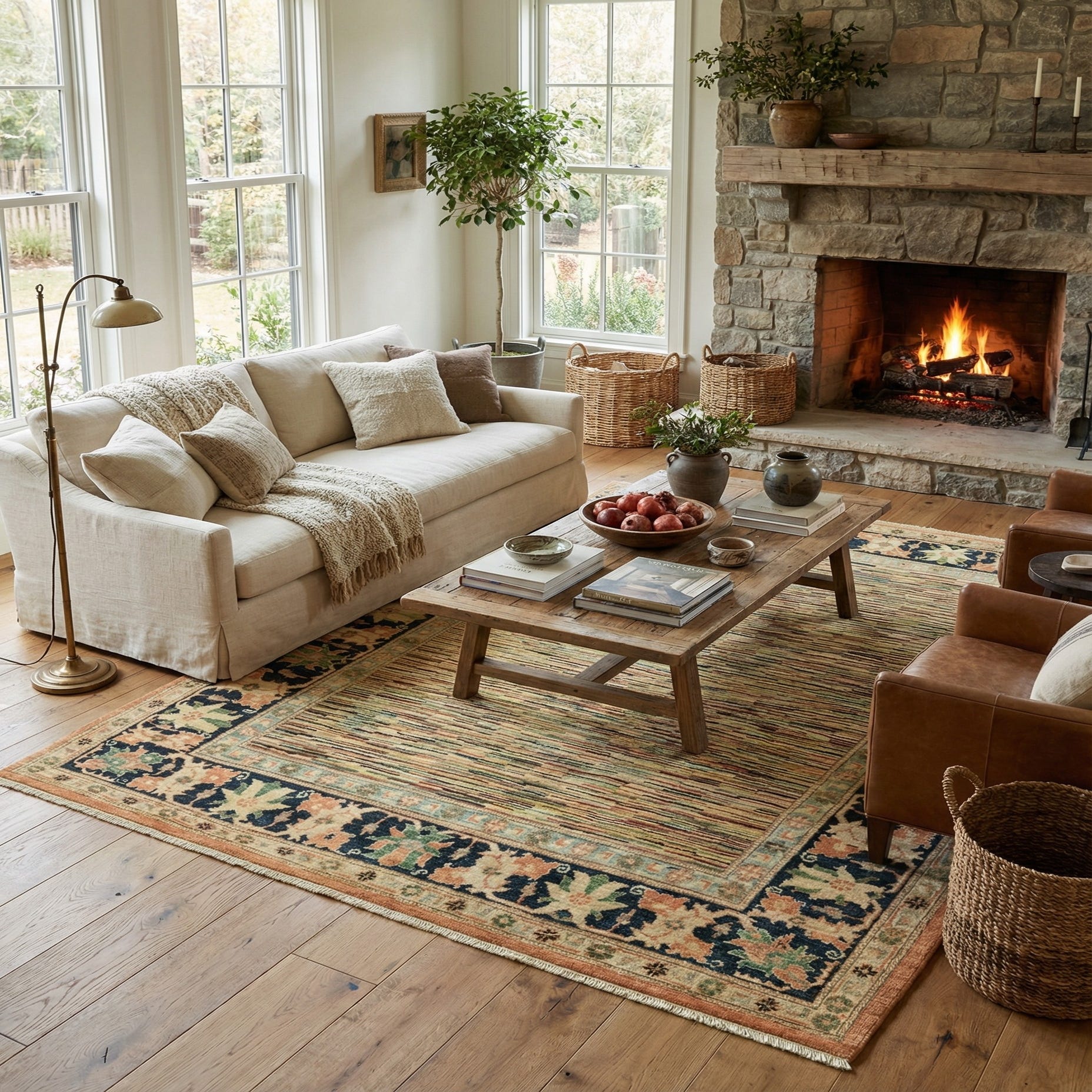 Primary color is Multi. Colors in this rug include: Multi, Beige, Blue, Brown, Navy Blue, Orange, Green, Ivory, Light Blue.