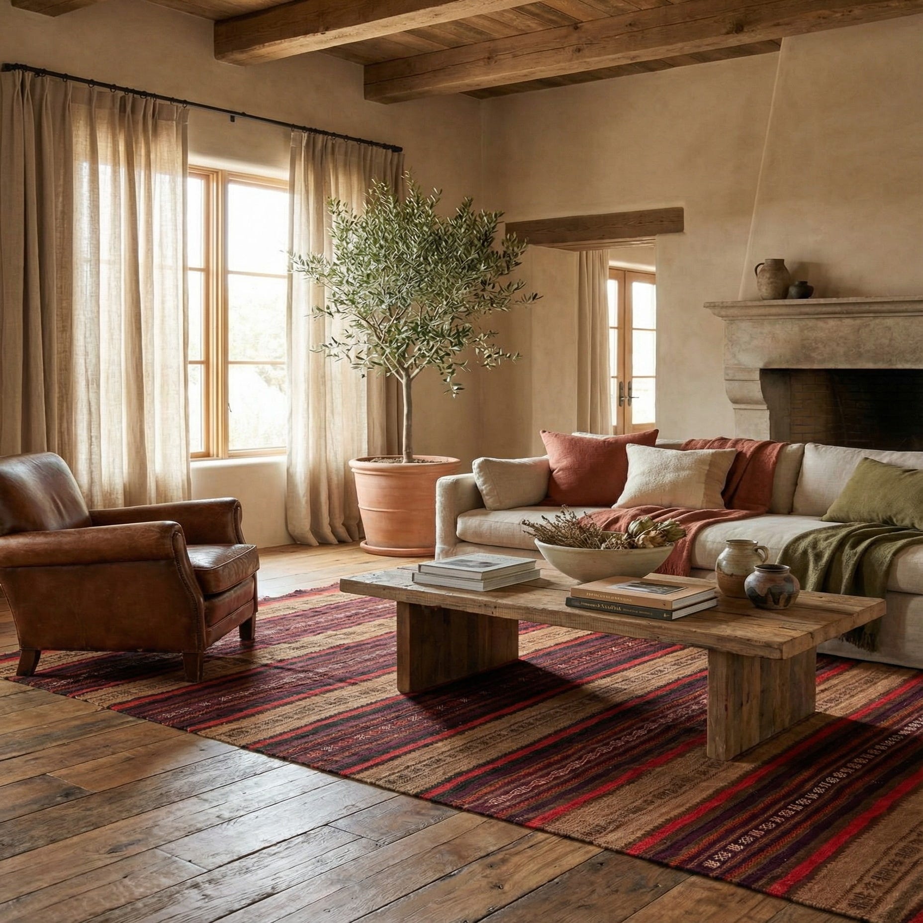 Primary color is Multi. Colors in this rug include: Multi, Brown, Red, Beige, Burgundy.