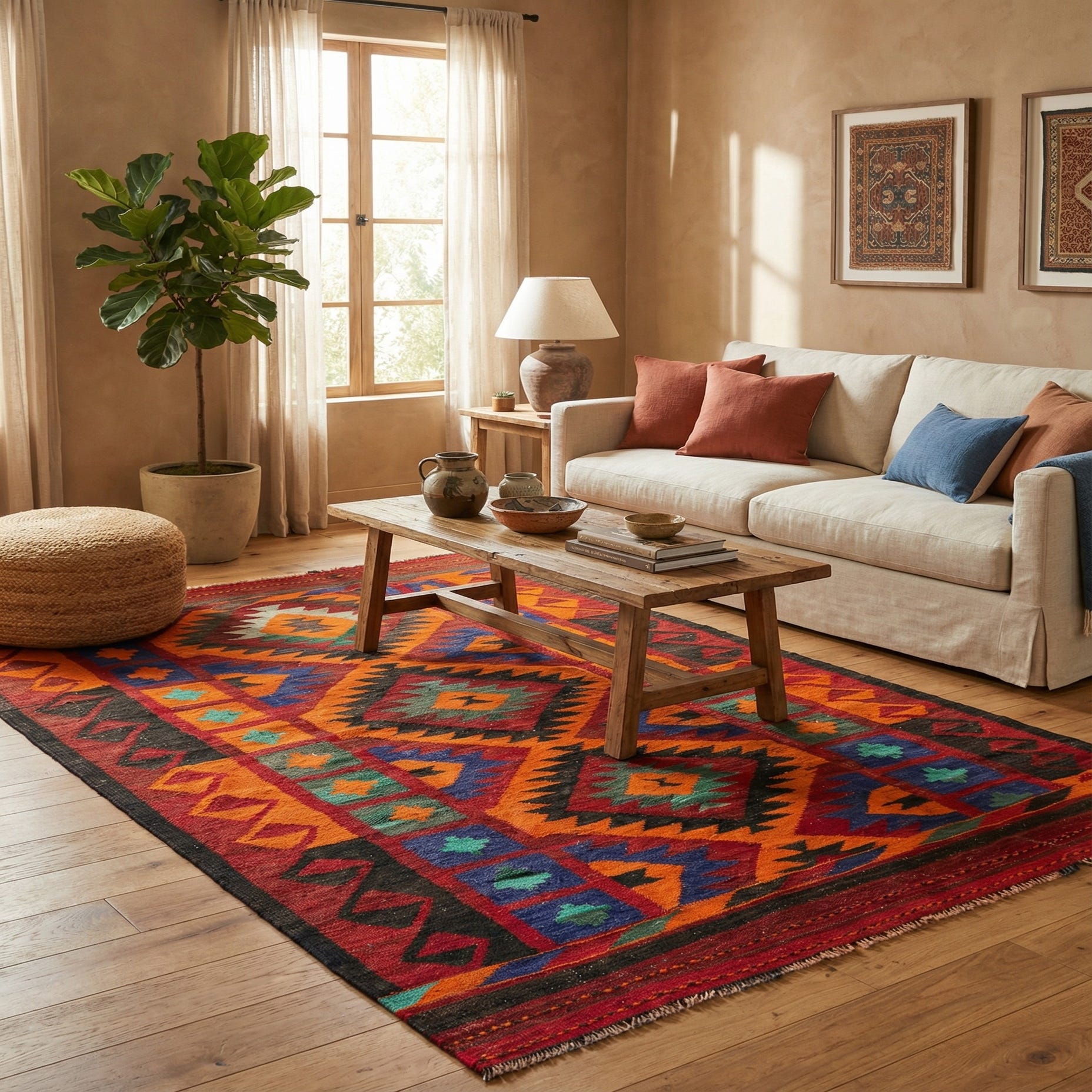 5' 5 x 8' 7 Hand Woven Kilim Fars Wool Rug