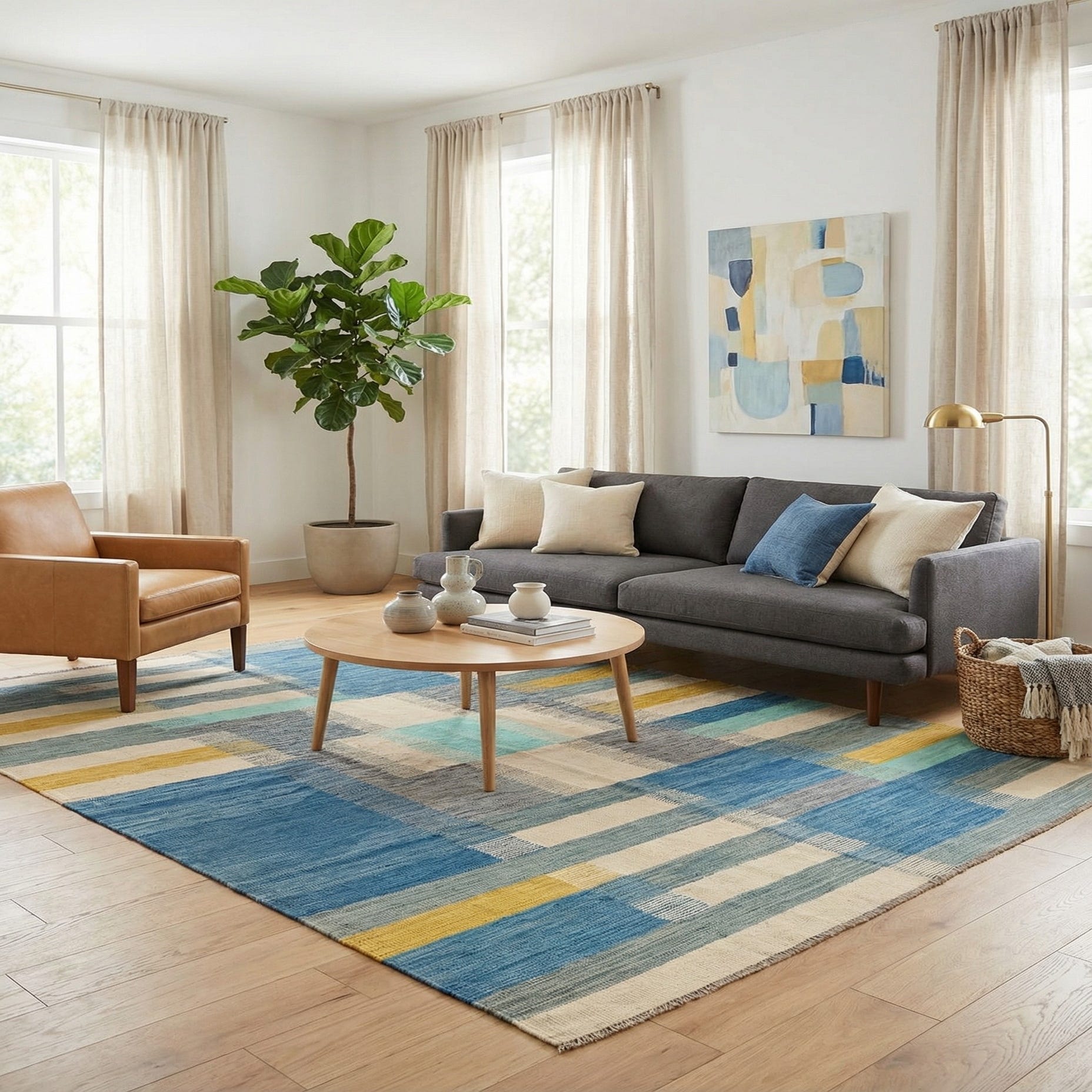Detail image of 4' 9 x 8'  Hand Woven Kilim Modern Wool Rug