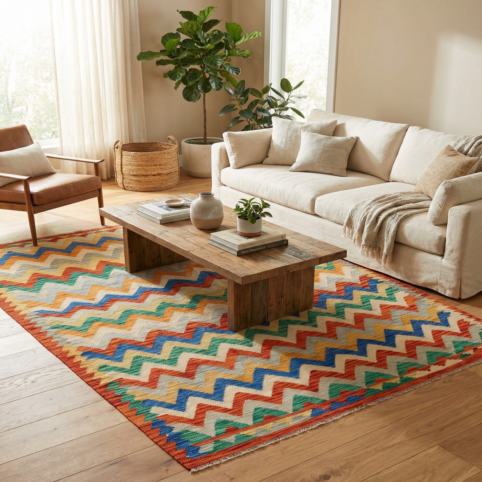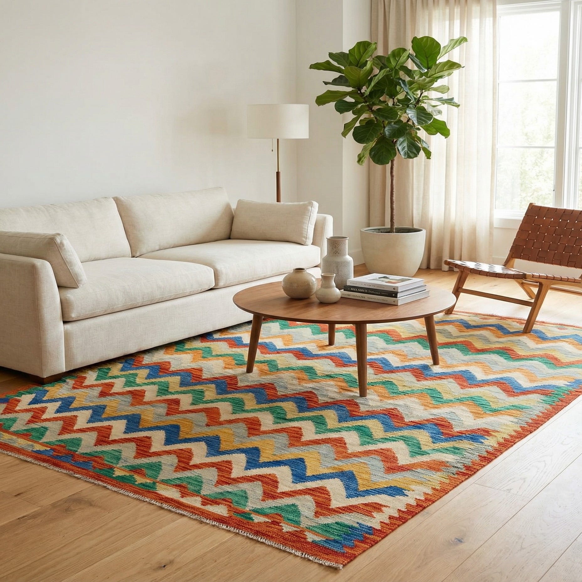 5' 9 x 8' Hand Woven Kilim Modern Wool Rug