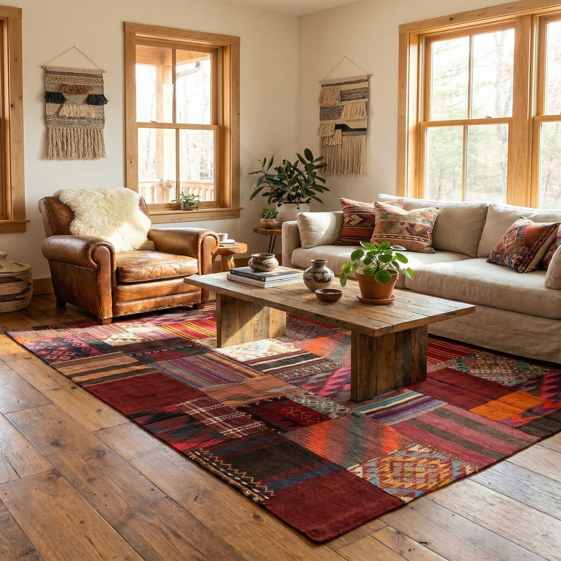 5' 2 x 6' 10 Hand Woven Kilim Patchwork Wool Rug