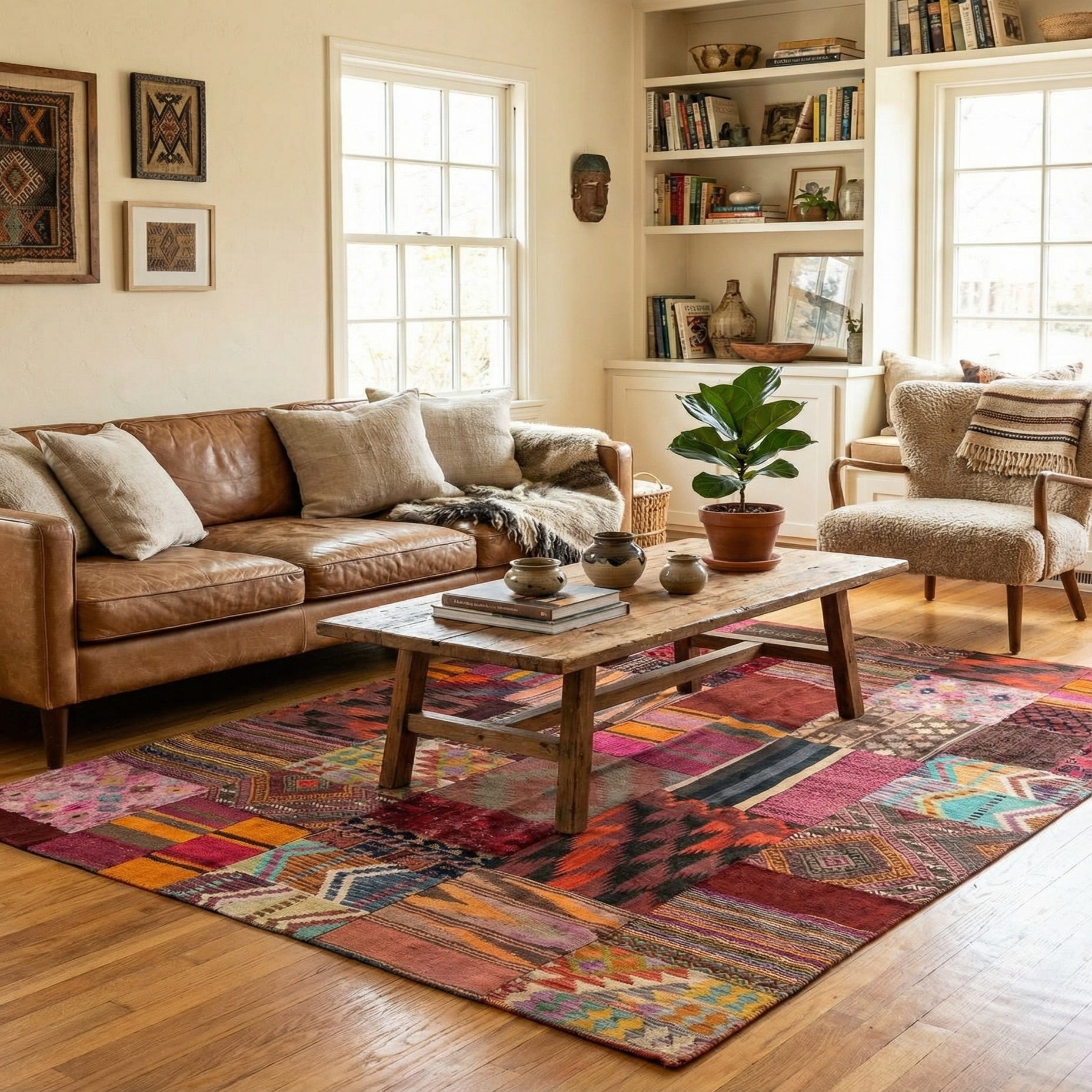 5' 1 x 6' 9 Hand Woven Kilim Patchwork Wool Rug