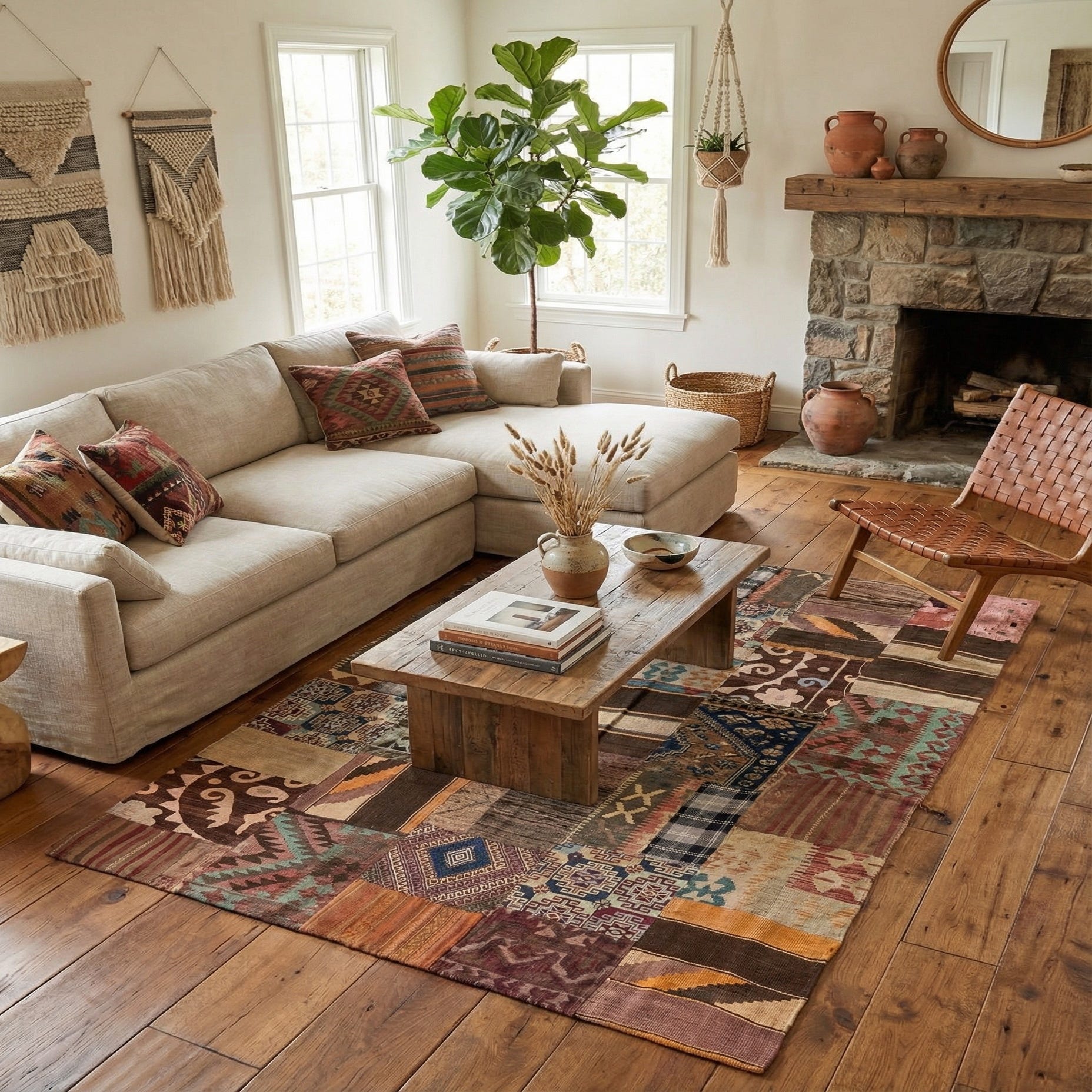 5' 5 x 8' Hand Woven Kilim Patchwork Wool Rug