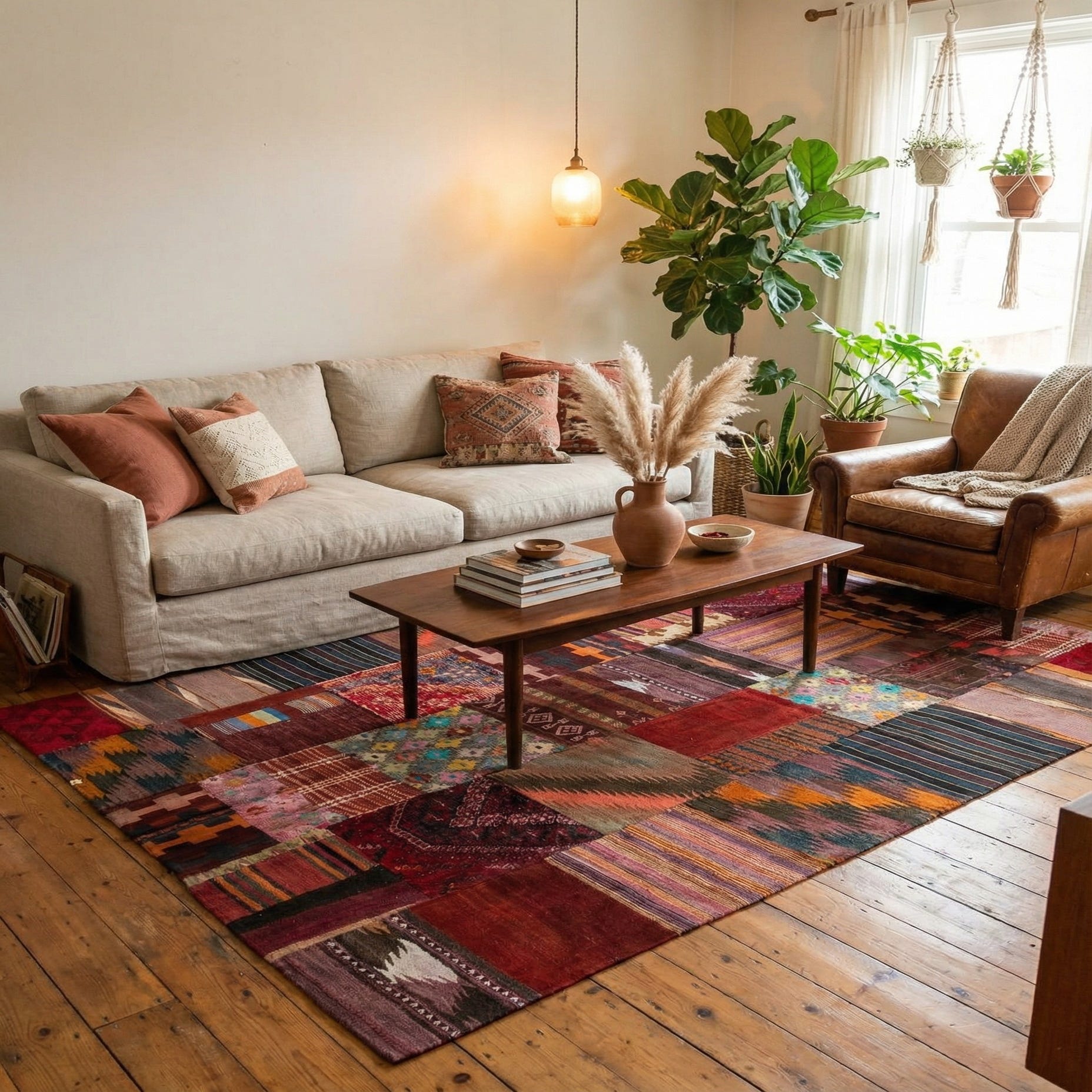 5' 7 x 8' 1 Hand Woven Kilim Patchwork Wool Rug