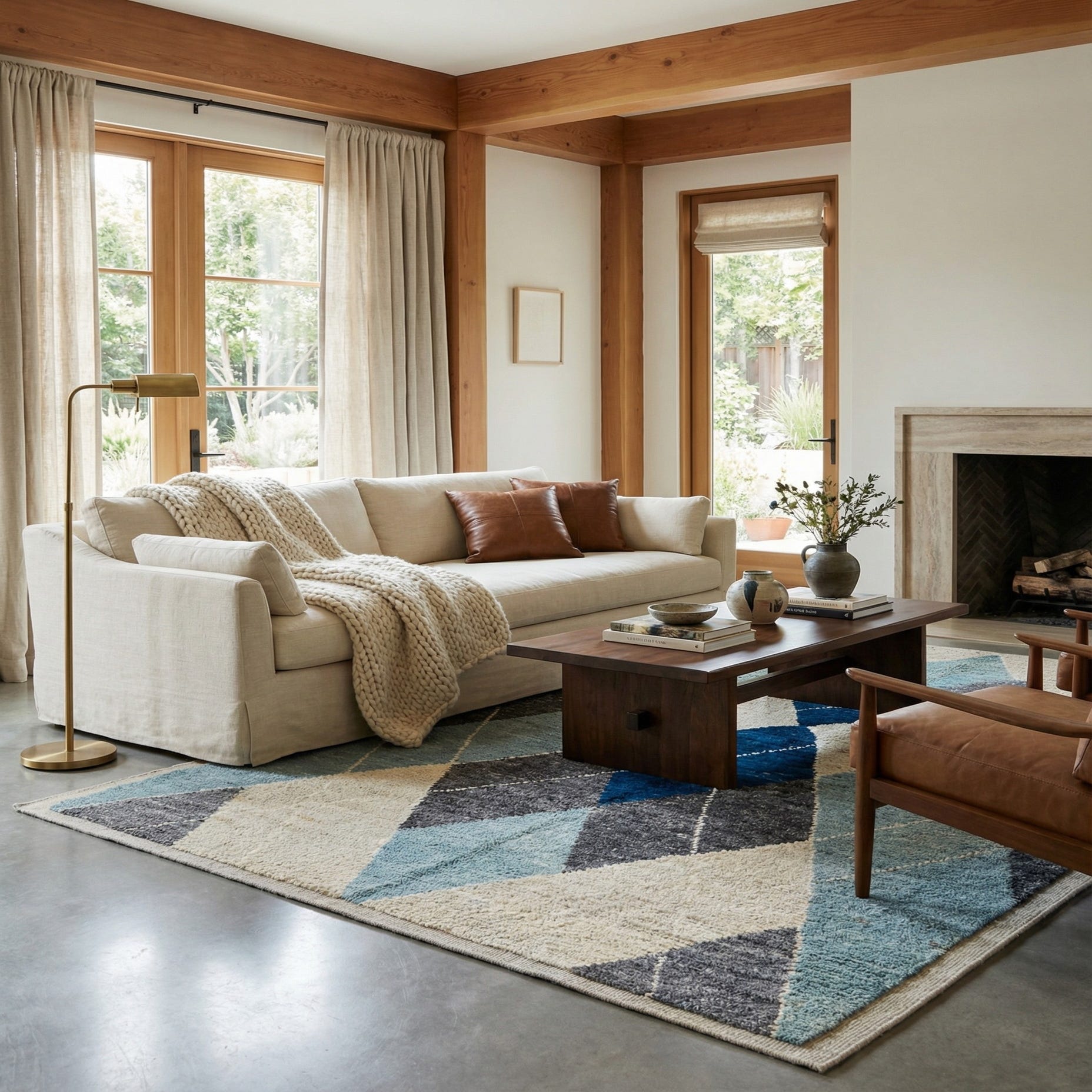 Primary color is Multi. Colors in this rug include: Multi, Ivory, Light Blue, Navy Blue, Gray.