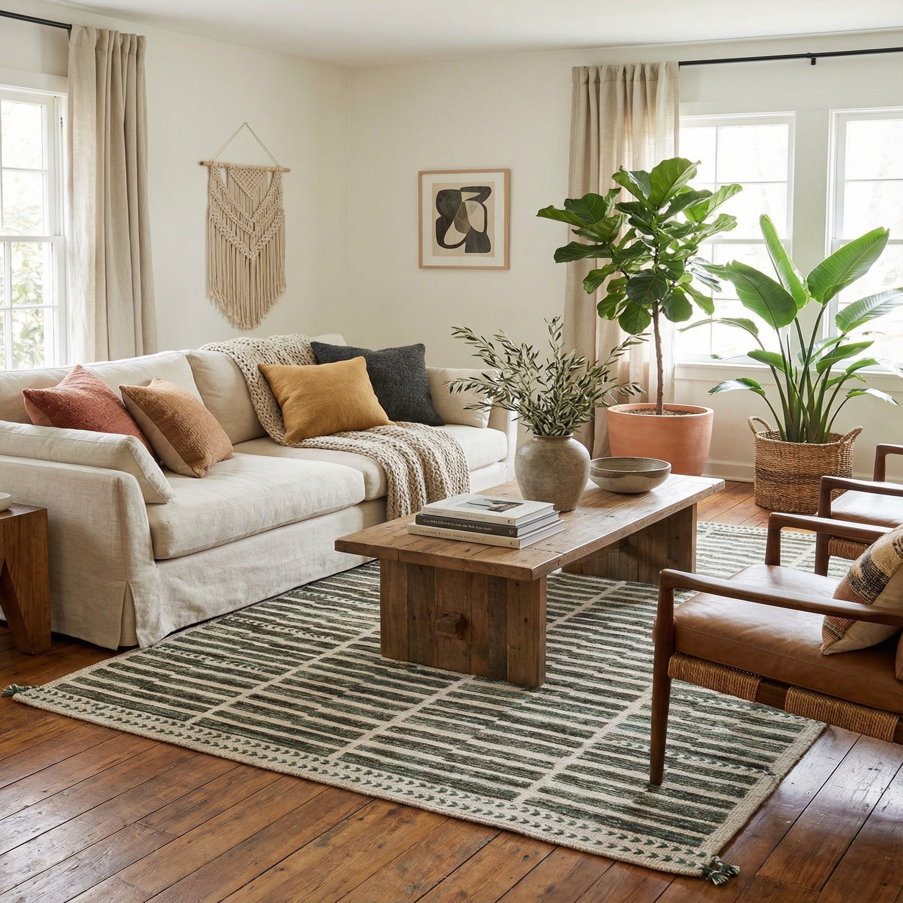 Primary color is Multi. Colors in this rug include: Multi, Beige, Black, Green, Blue.
