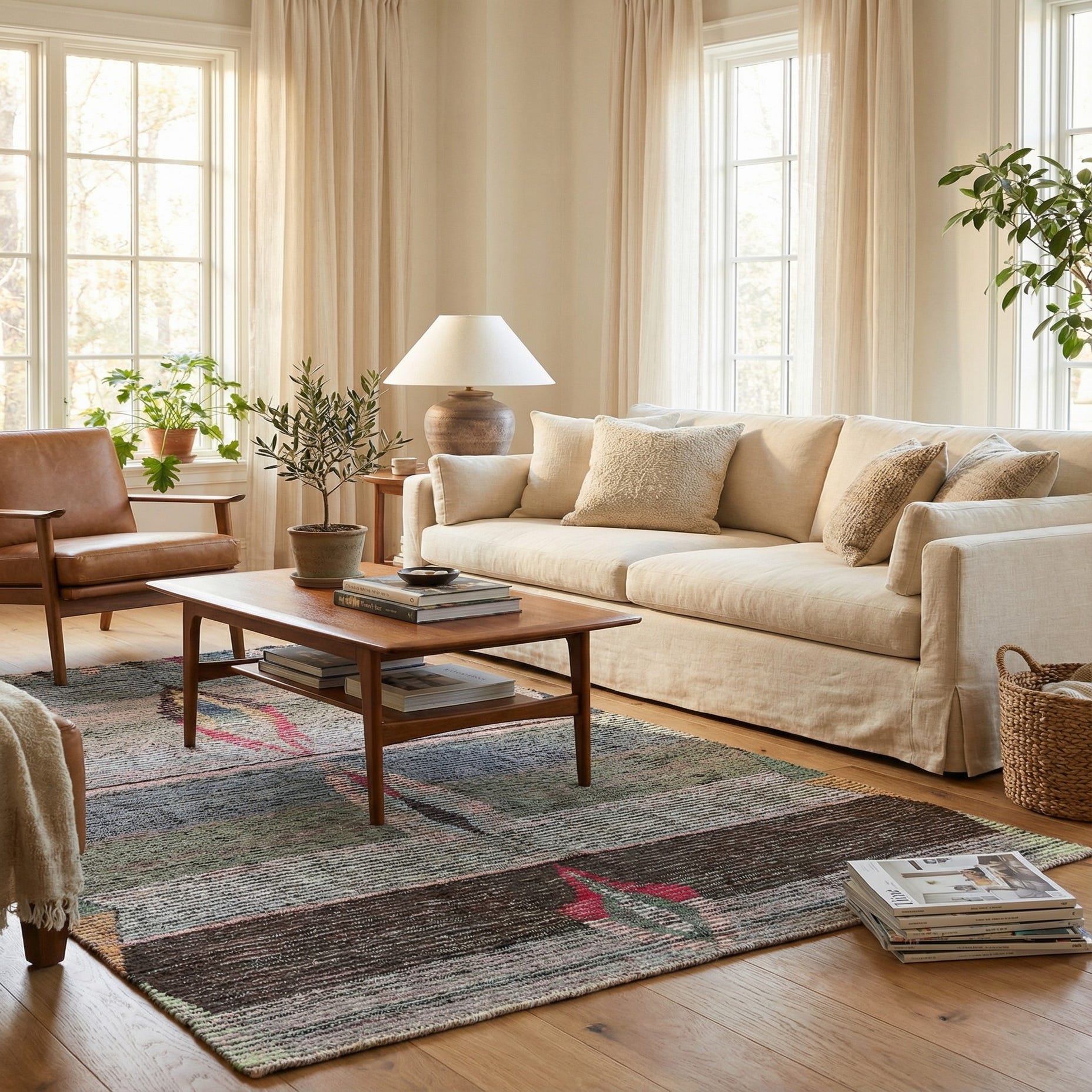 Primary color is Multi. Colors in this rug include: Multi, Beige, Brown, Gray, Olive, Pink, Light Blue, Red, Ivory.
