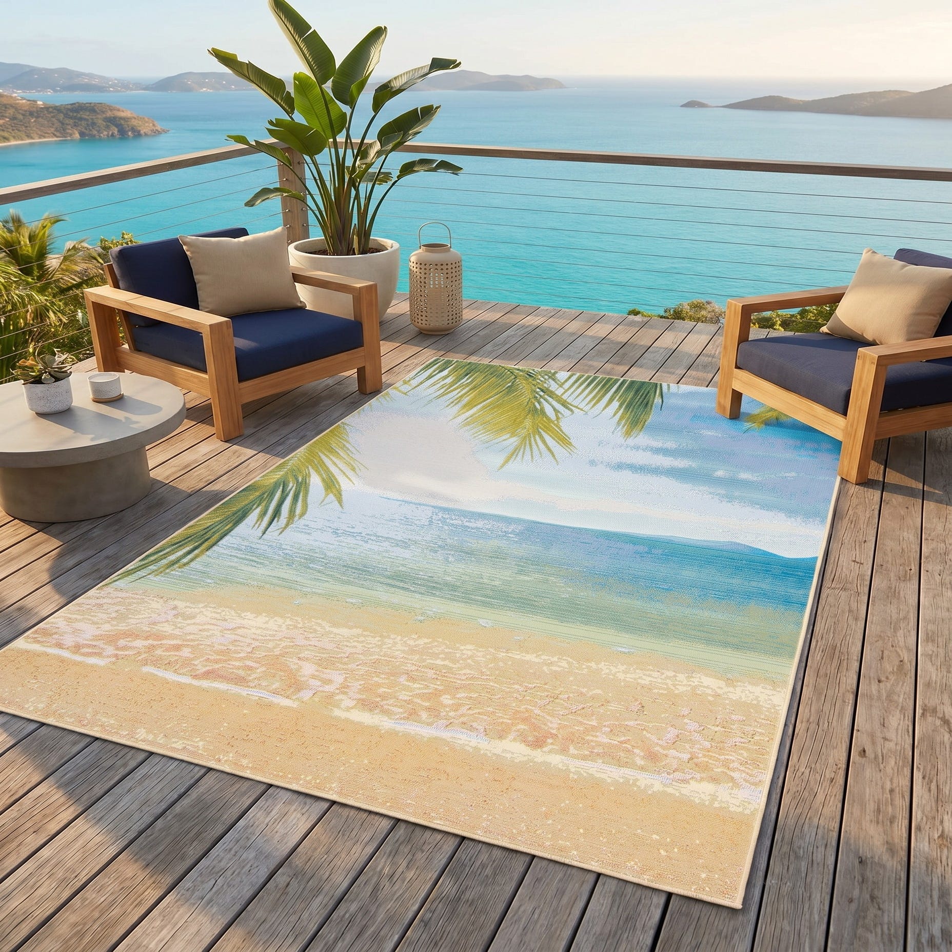 5' 3 x 8' Easy-Clean Coastal Indoor / Outdoor Rug