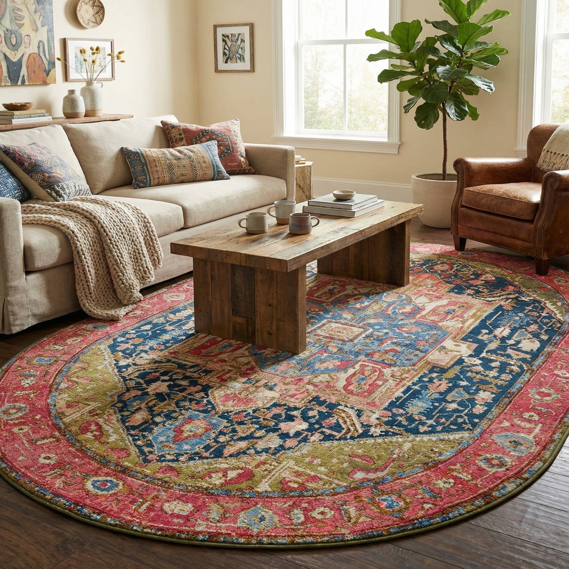 5' 3 x 8' Washable Traditional Indoor / Outdoor Oval Rug