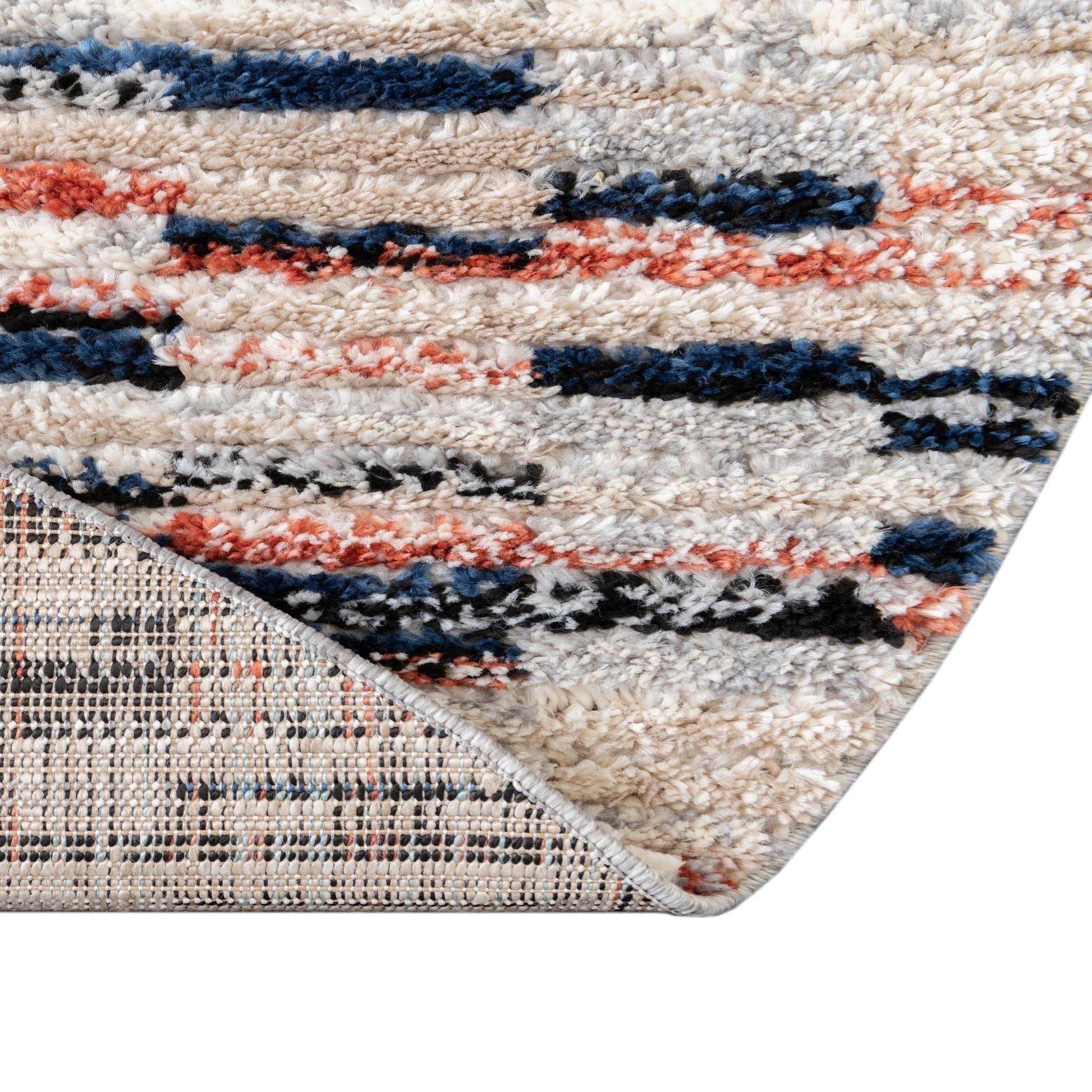 Primary color is Multi. Colors in this rug include: Multi, Beige, Ivory, Navy Blue, Rust Red, Gray.