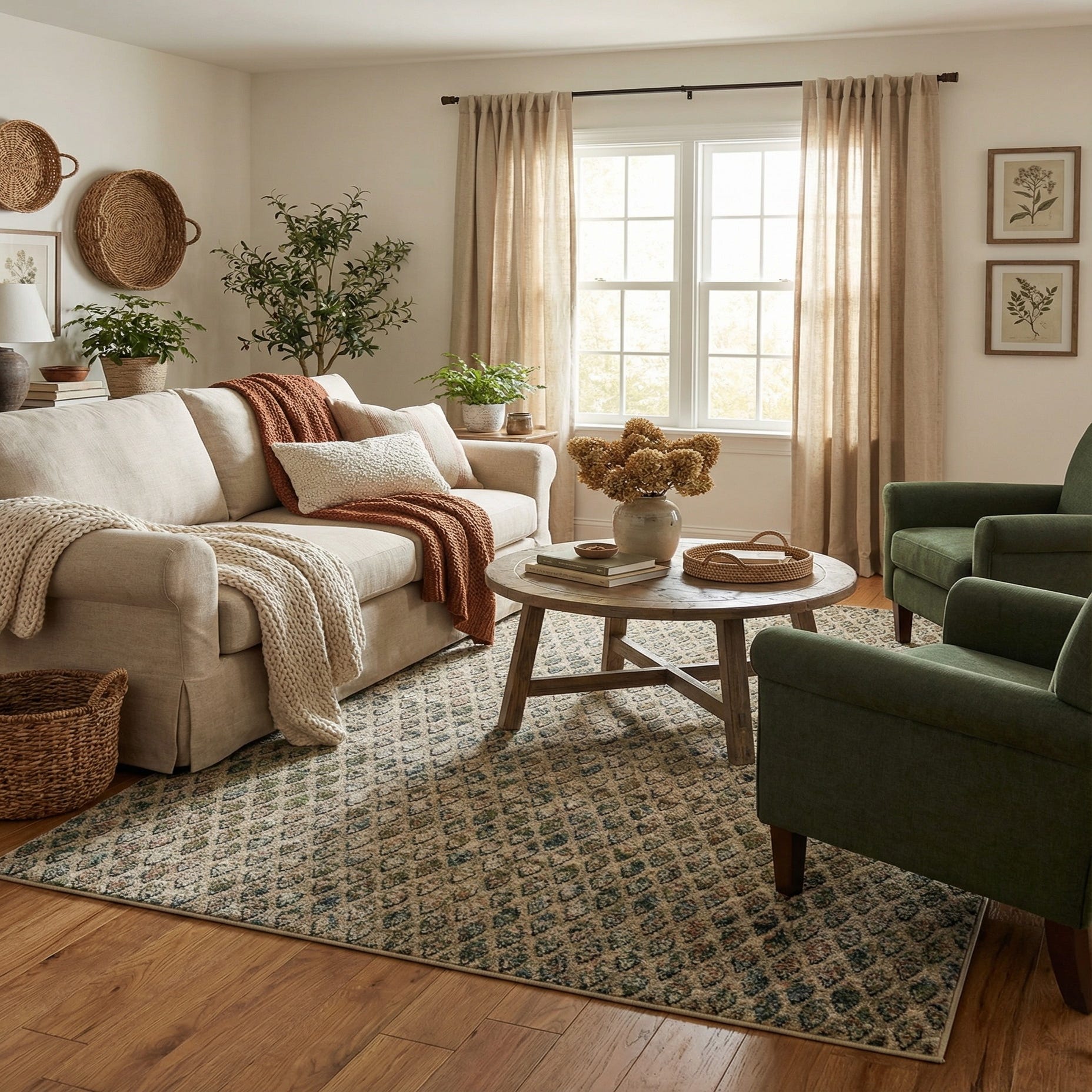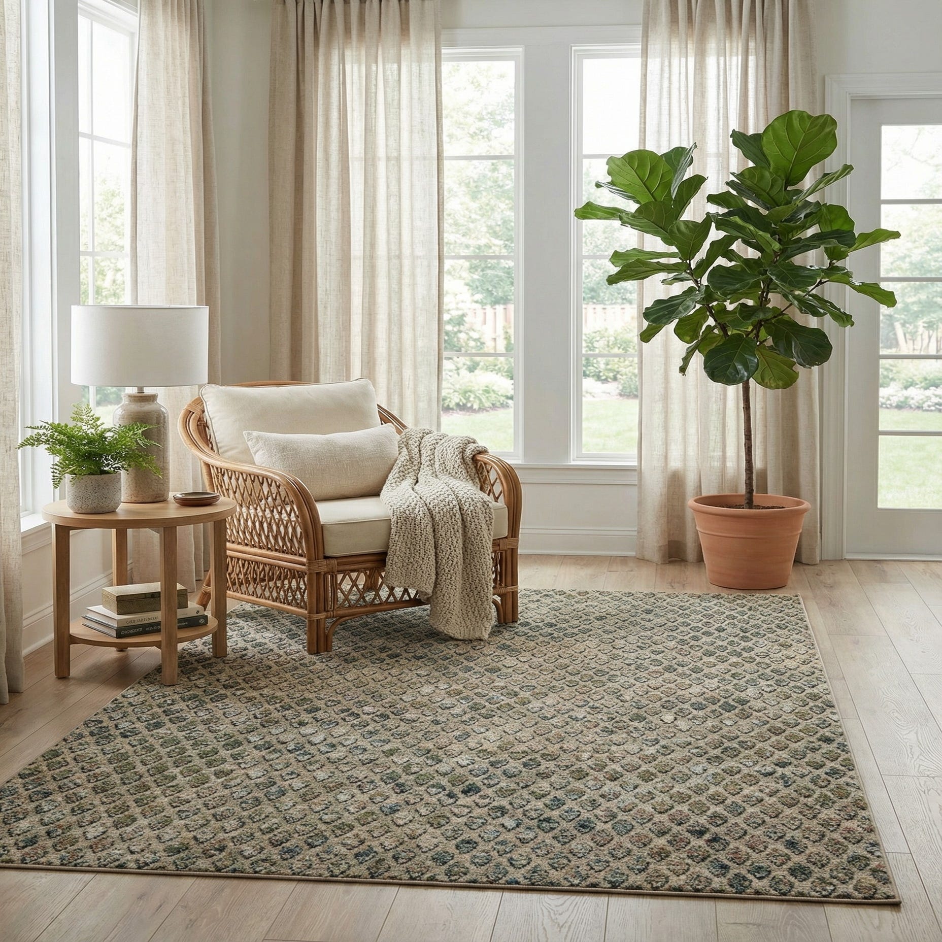 Primary color is Multi. Colors in this rug include: Multi, Beige, Black, Ivory, Light Blue, Light Green.