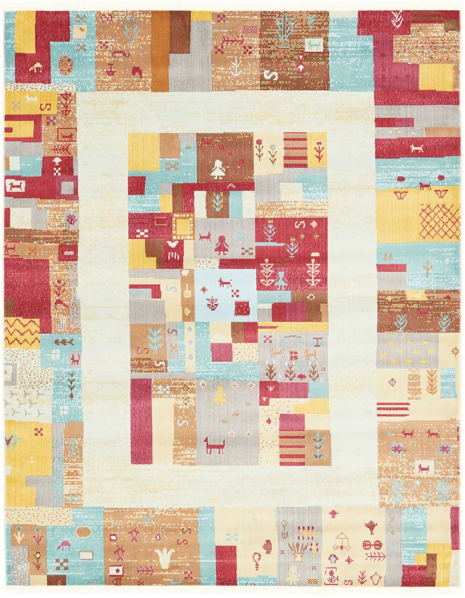 Primary color is Multi. Colors in this rug include: Multi, Blue, Brown, Gold, Ivory, Light Green, Tan, Pink.