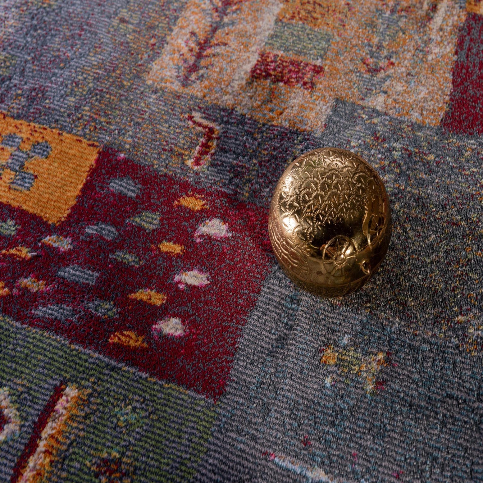 Primary color is Multi. Colors in this rug include: Multi, Blue, Cream, Gold, Green, Ivory, Orange, Red, Yellow, Gray.