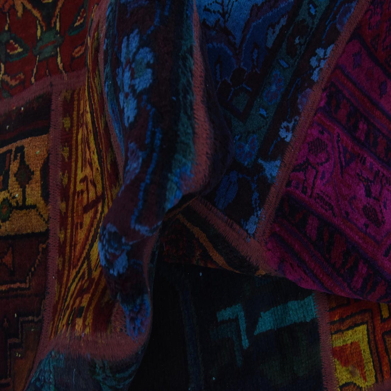This Persian Ultra Vintage rug is an antique Persian Rug that has been washed, over-dyed, and then shaved down to a low pile. Look at the detail pictures to fully appreciate the uniqueness of this piece.