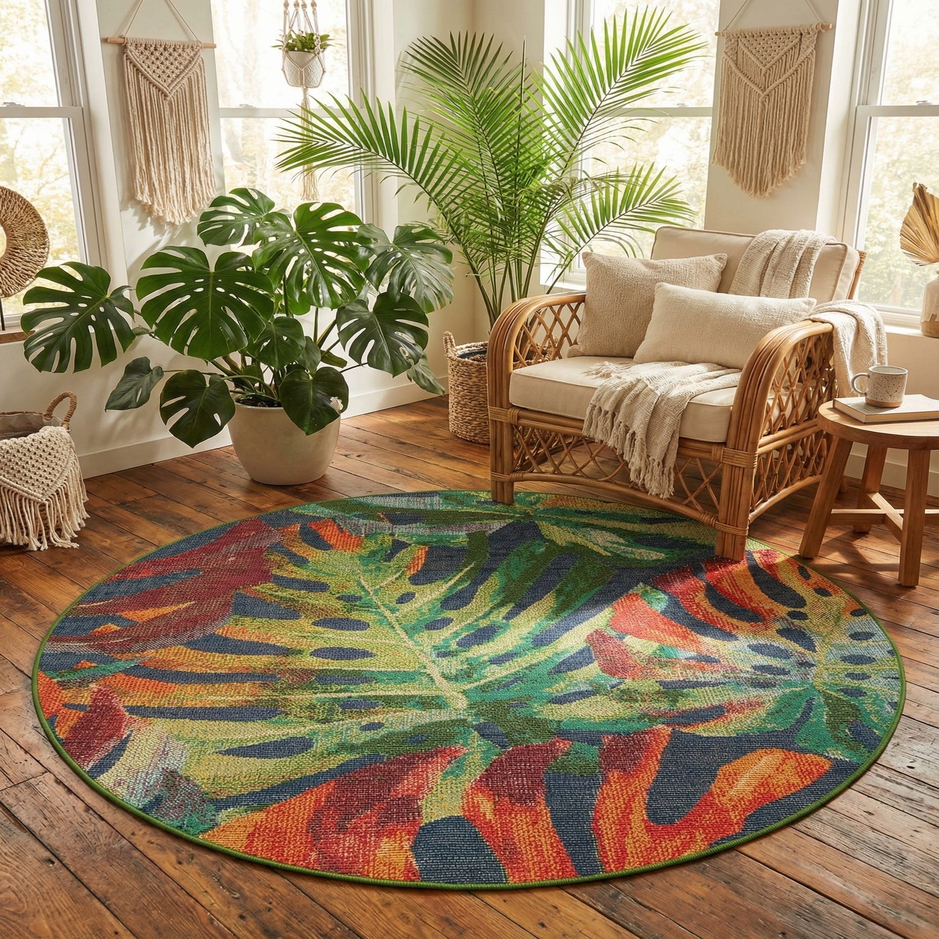 Primary image 6' 1 x 6' 1  Washable Baja Indoor / Outdoor Round Rug