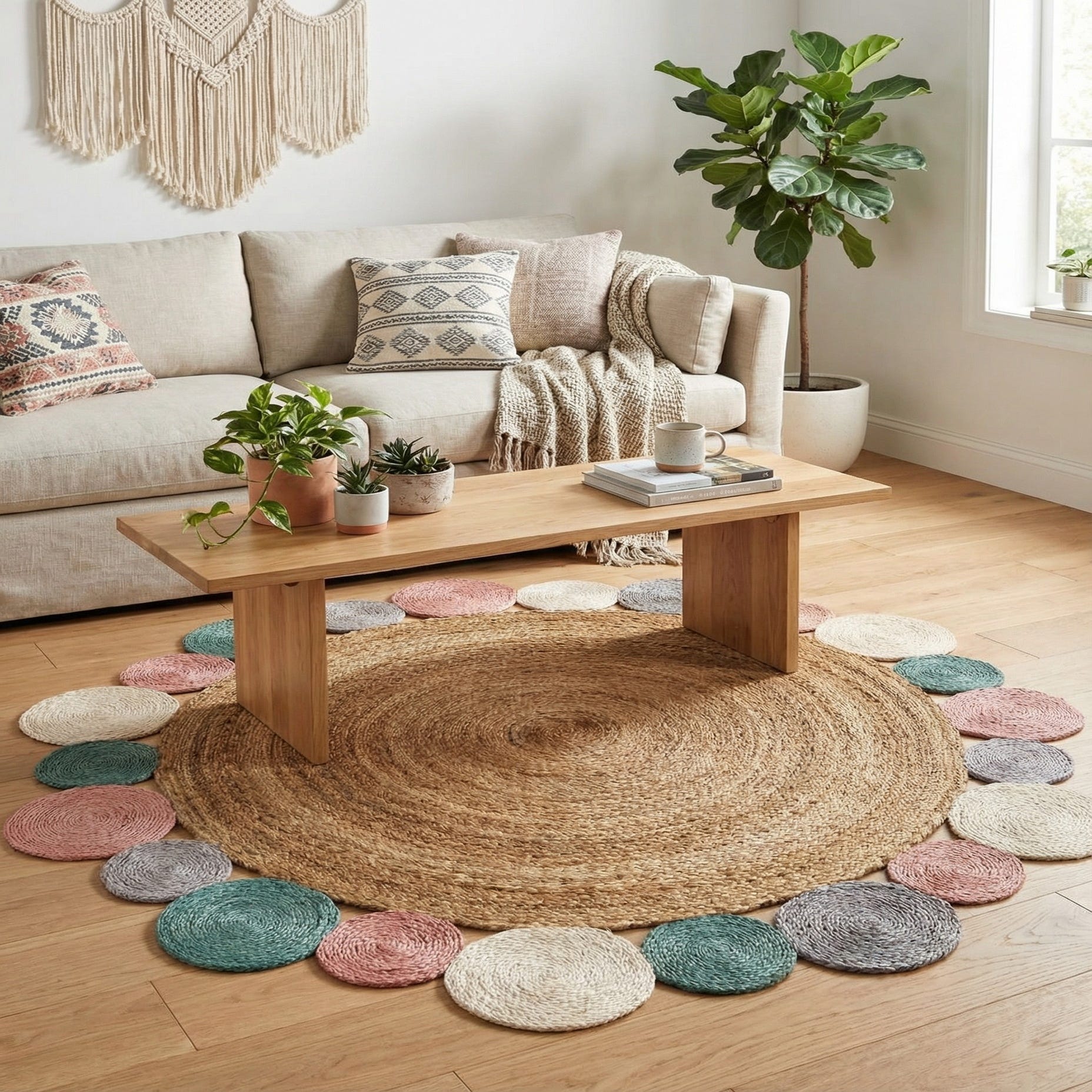 6' 1 x 6' 1 Hand Braided Jute Round Rug