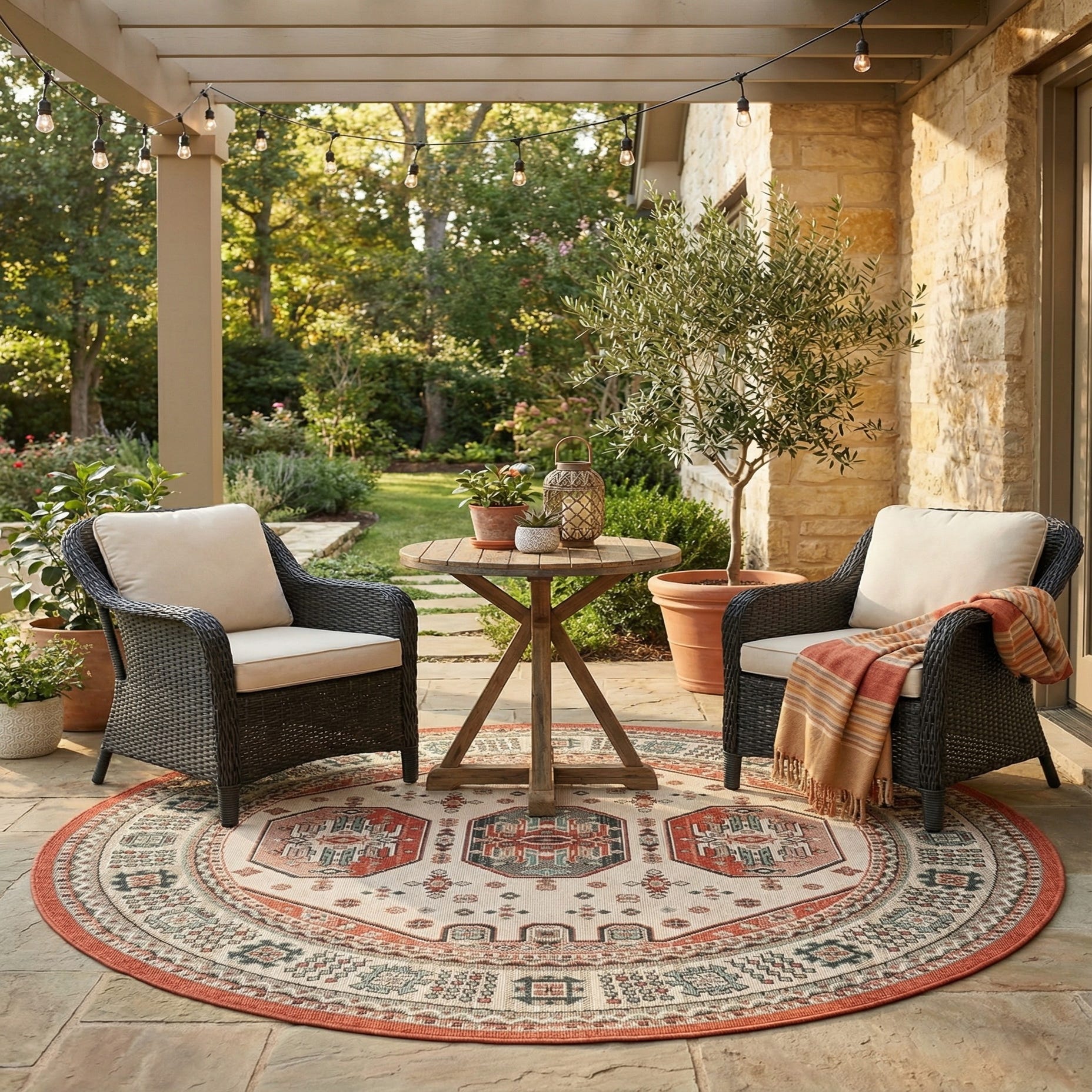 6' x 6' Washable Traditional Indoor / Outdoor Round Rug