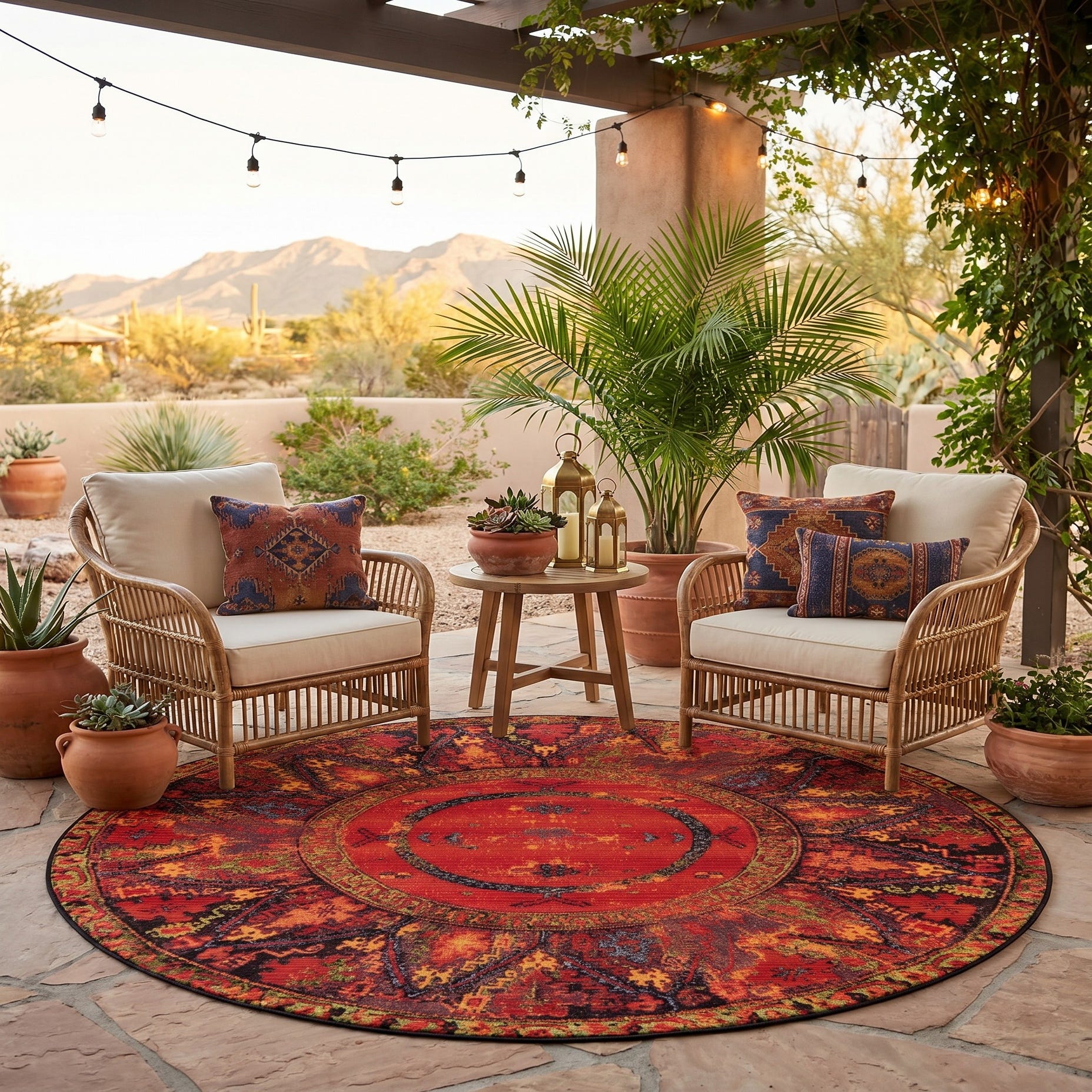 6' x 6' Easy-Clean Tribal Indoor / Outdoor Round Rug