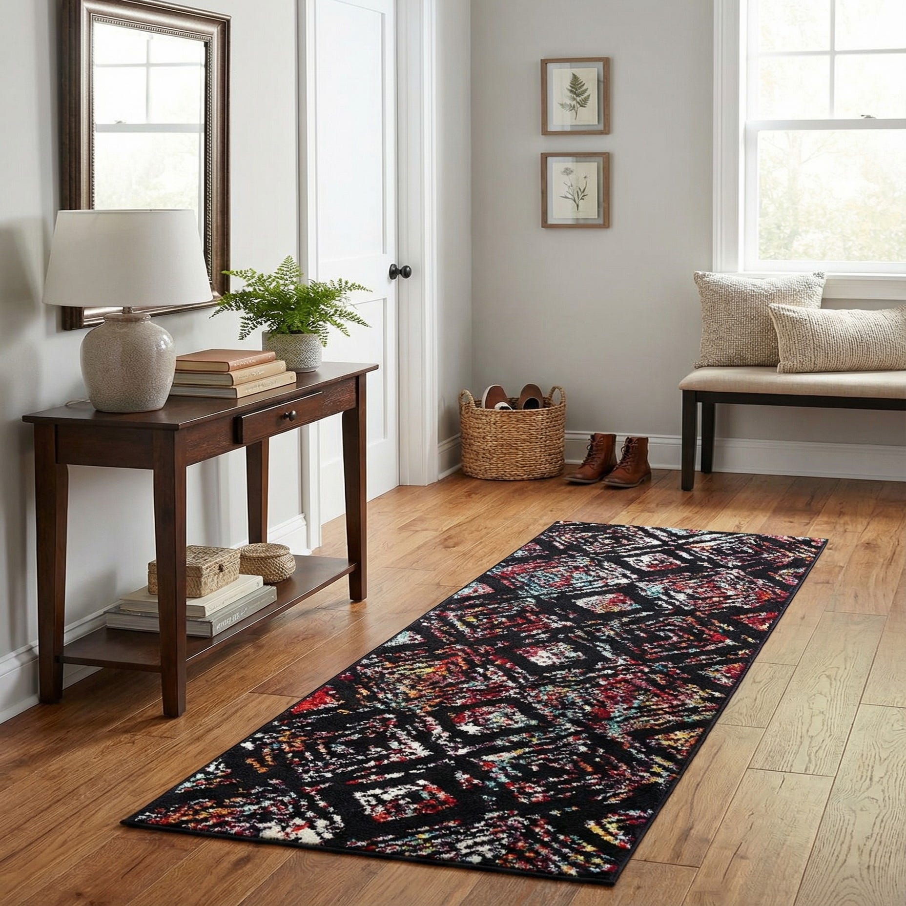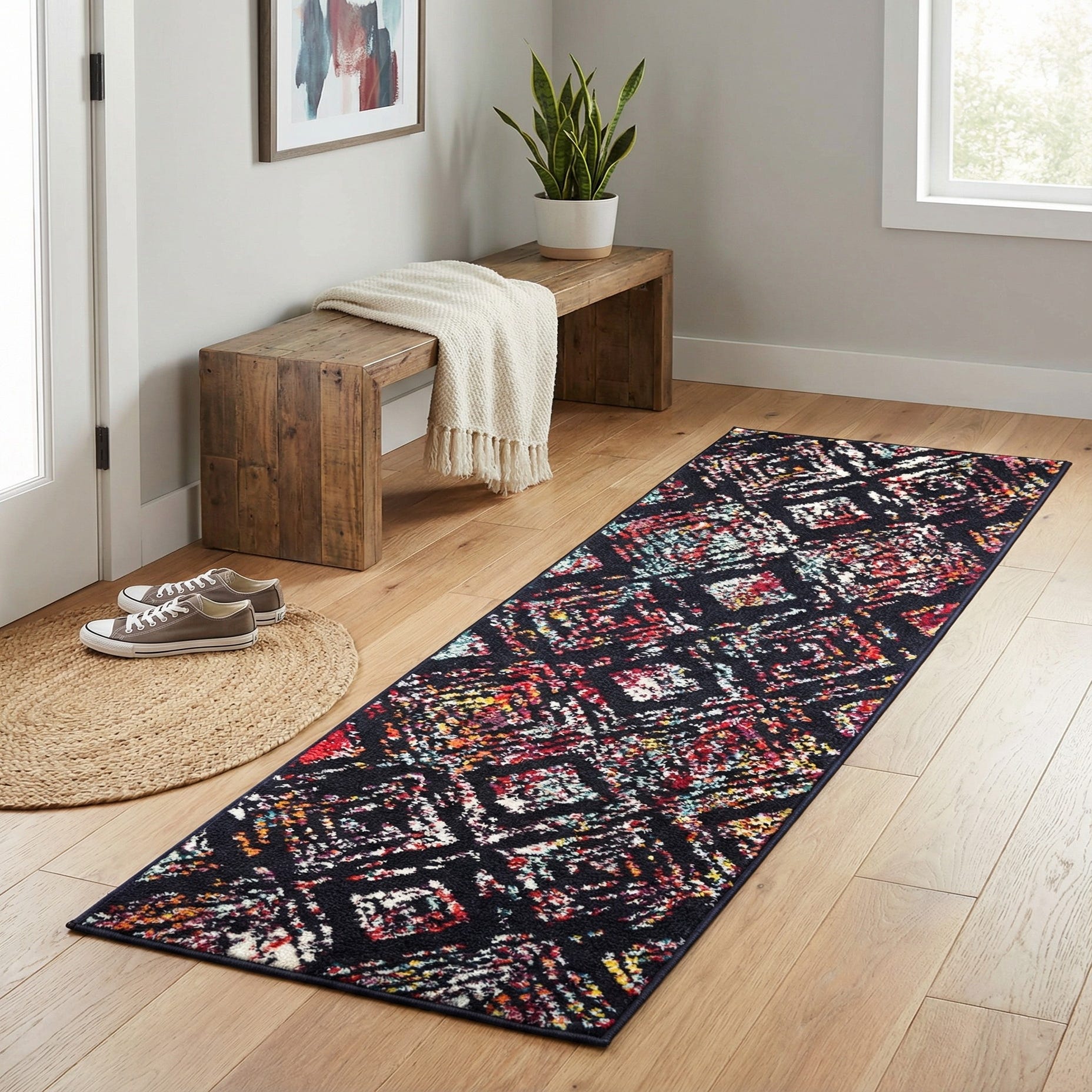 Primary color is Multi. Colors in this rug include: Multi, Blue, Ivory, Light Blue, Navy Blue, Red, Yellow, Orange.