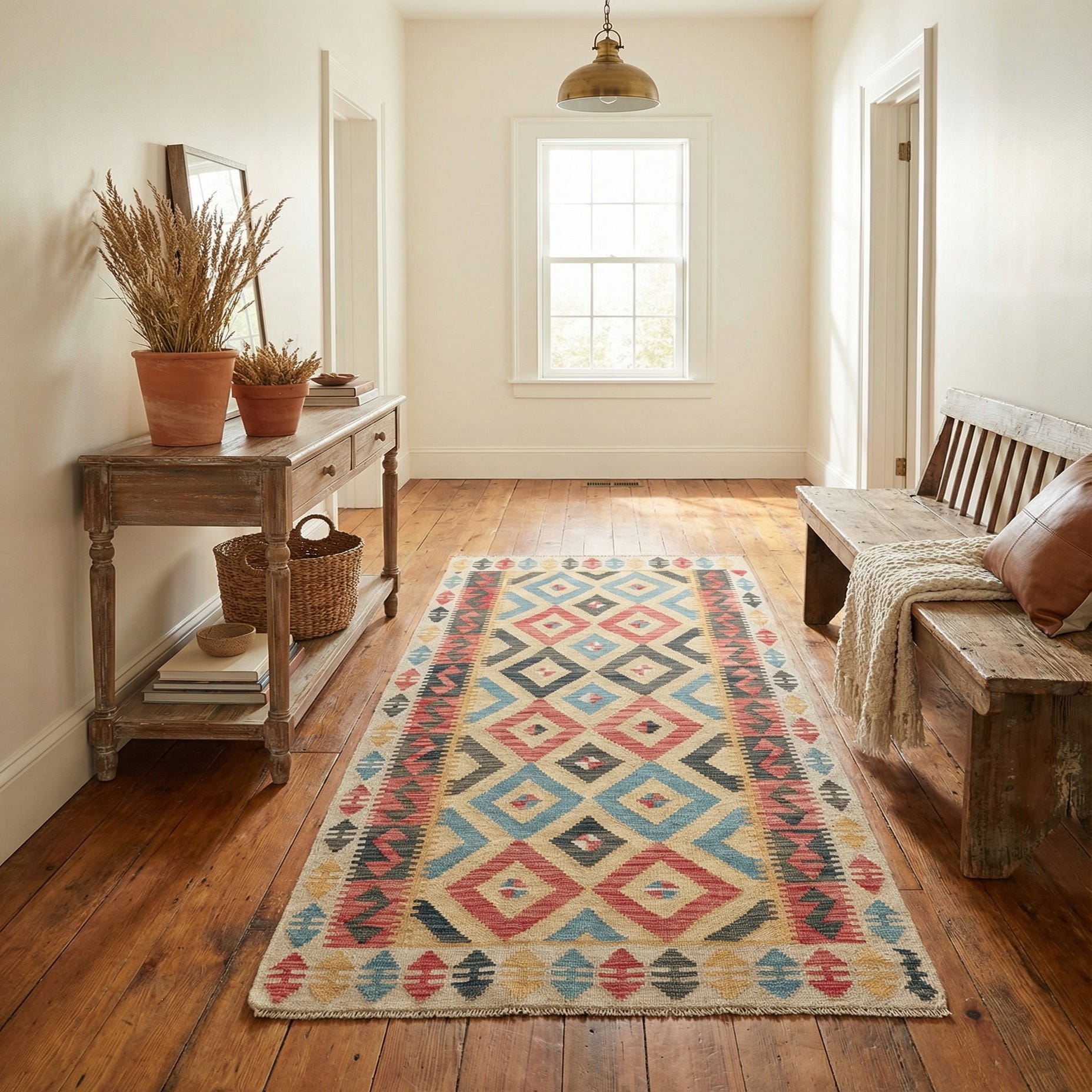 3' 4 x 6' 6 Hand Woven Kilim Maymana Wool Runner Rug