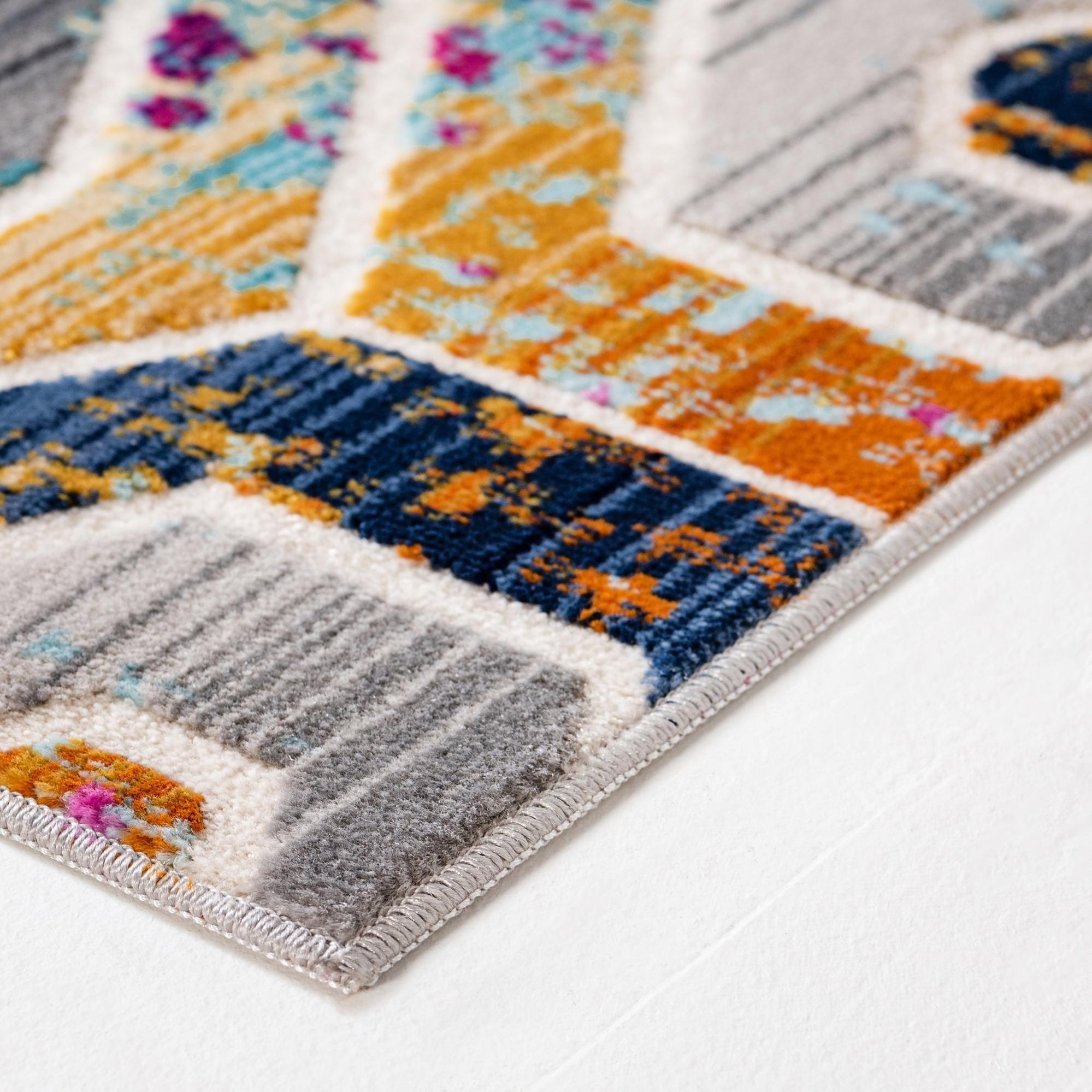 Primary color is Multi. Colors in this rug include: Multi, Gold, Ivory, Light Blue, Orange, Violet, Yellow, Pink.