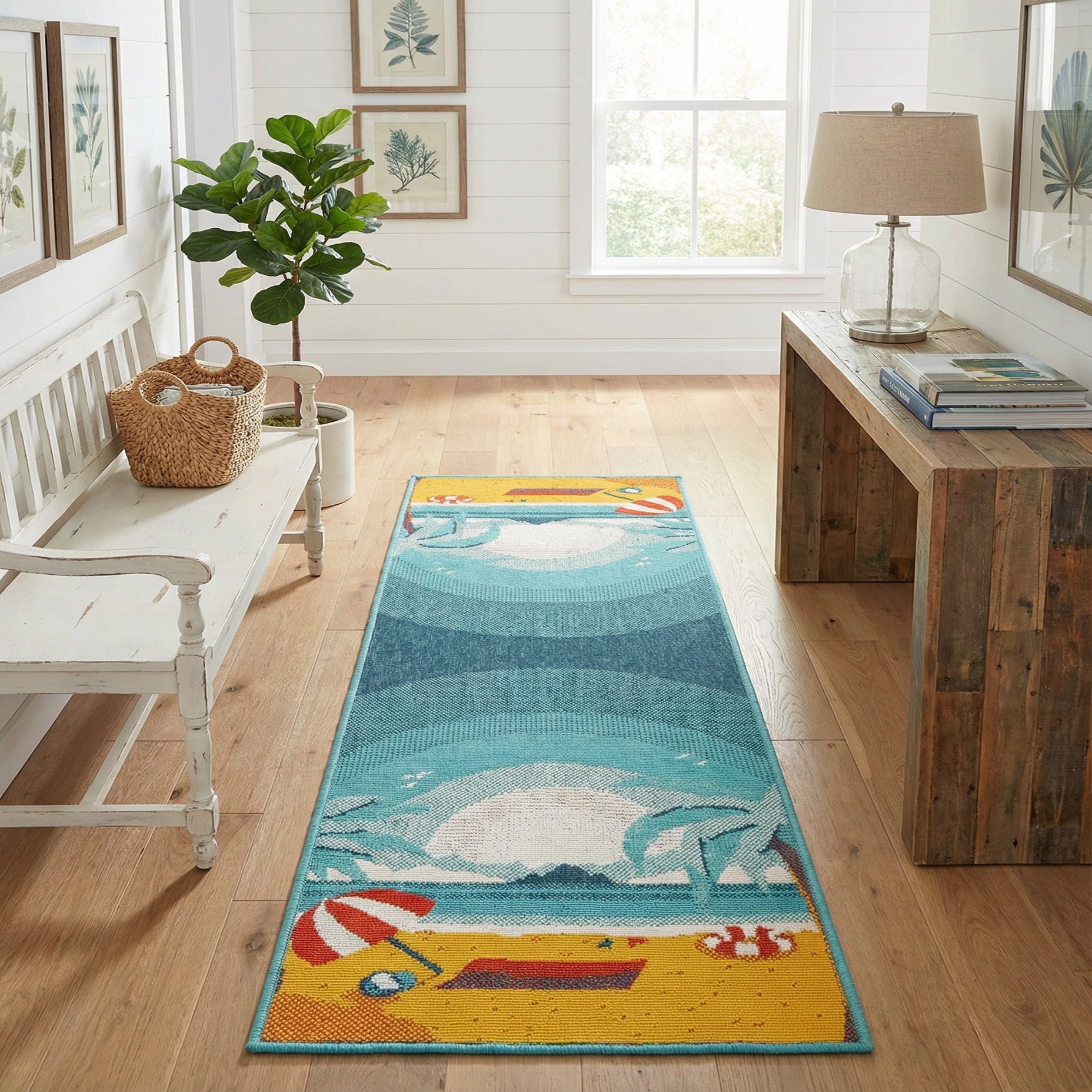 Primary image 2' x 6'  Washable Coastal Indoor / Outdoor Runner Rug
