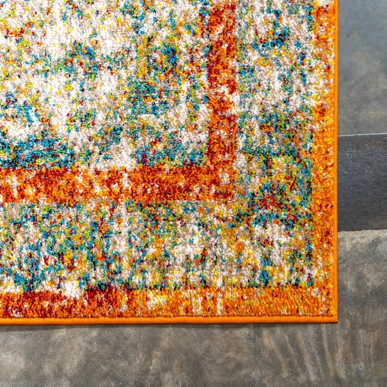 Primary color is Multi. Colors in this rug include: Multi, Blue, Gray, Ivory, Navy Blue, Orange, Red, Yellow.
