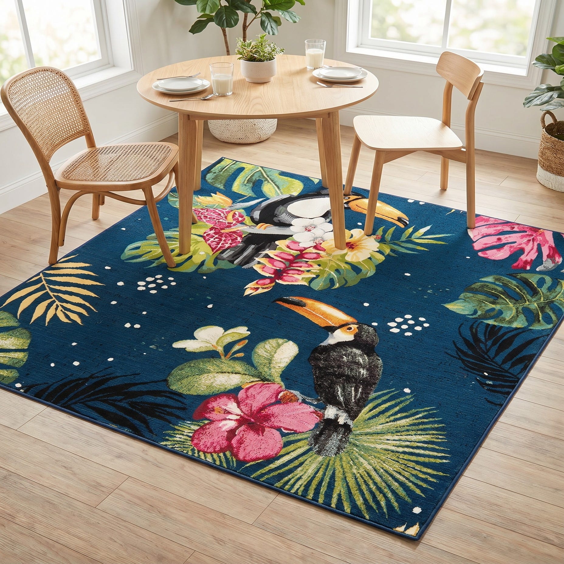 6' x 6' Easy-Clean Botanical Indoor / Outdoor Square Rug