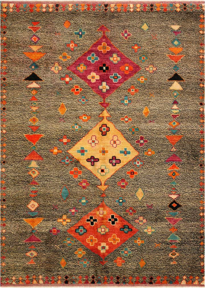 Primary color is Multi. Colors in this rug include: Multi, Beige, Black, Blue, Brown, Gray, Green, Orange, Red, Yellow, Pink.