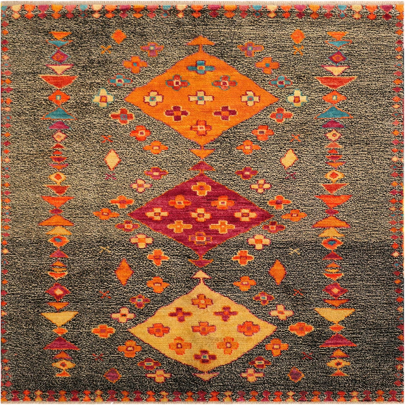 Primary color is Multi. Colors in this rug include: Multi, Beige, Black, Blue, Brown, Ivory, Orange, Pink.
