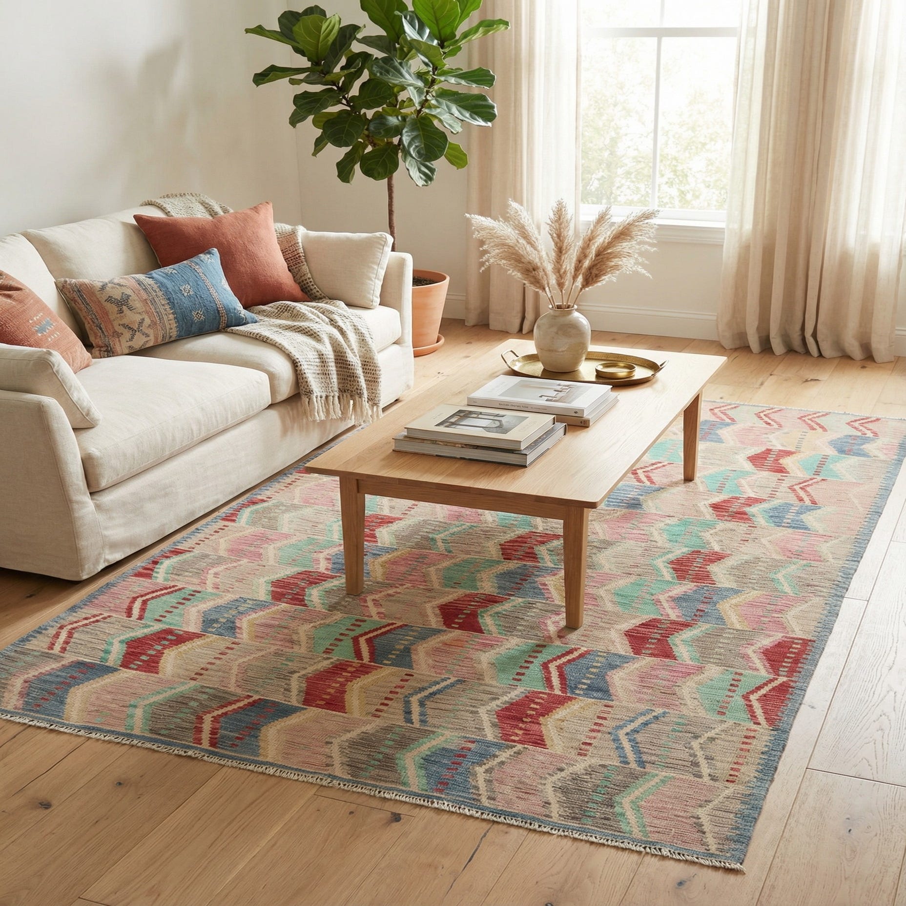 5' 8 x 8' Hand Woven Kilim Modern Wool Rug