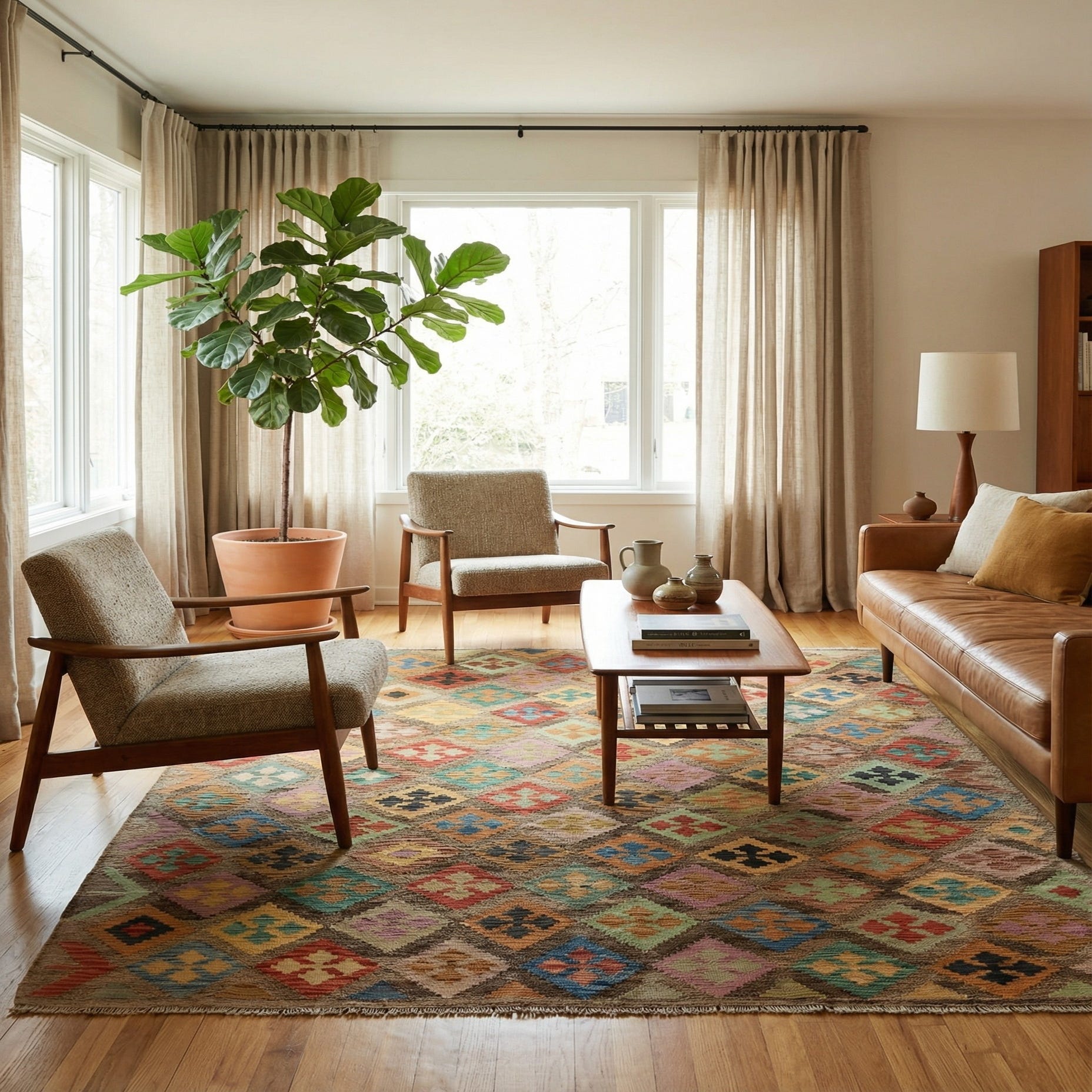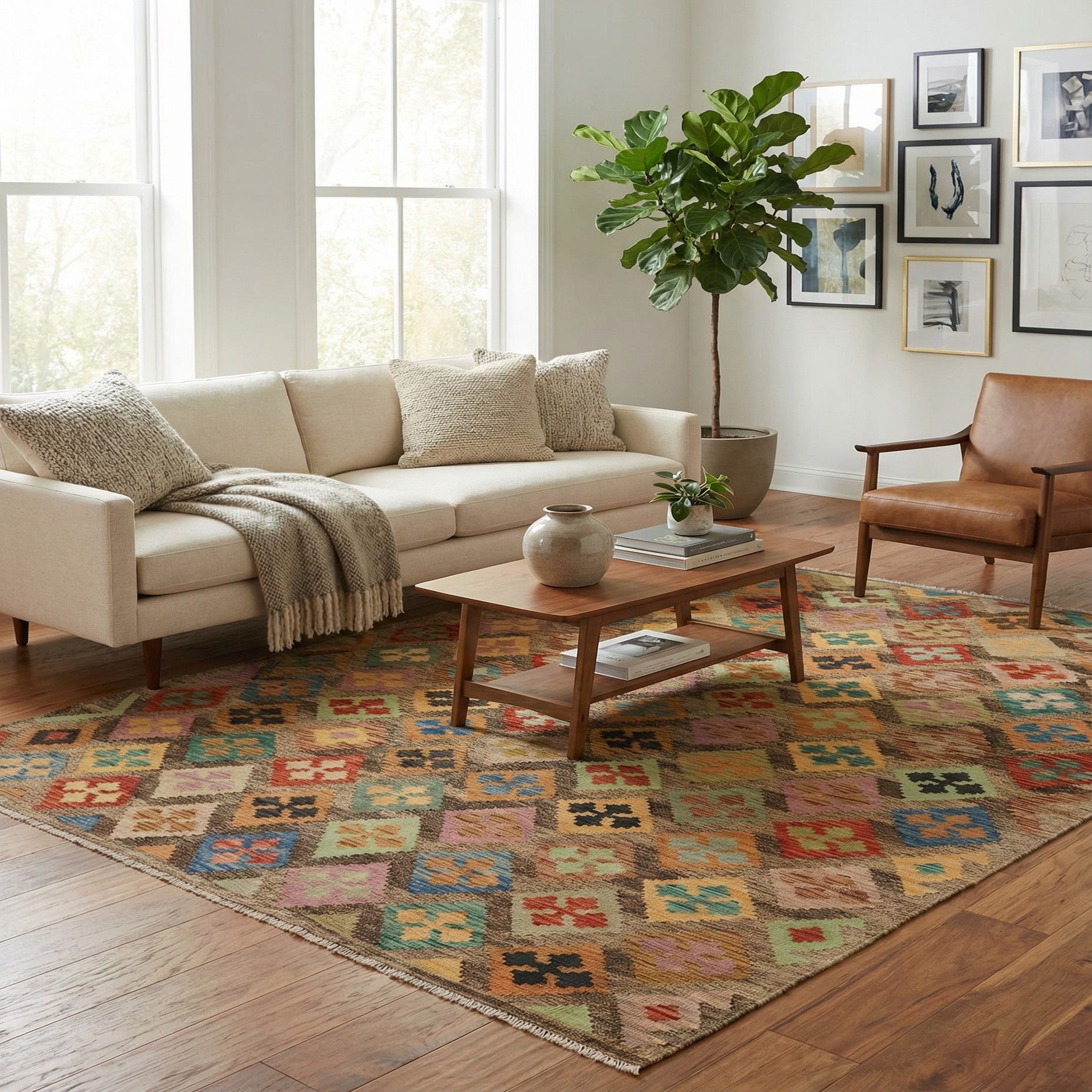 6' 6 x 8' 2 Hand Woven Kilim Modern Wool Rug