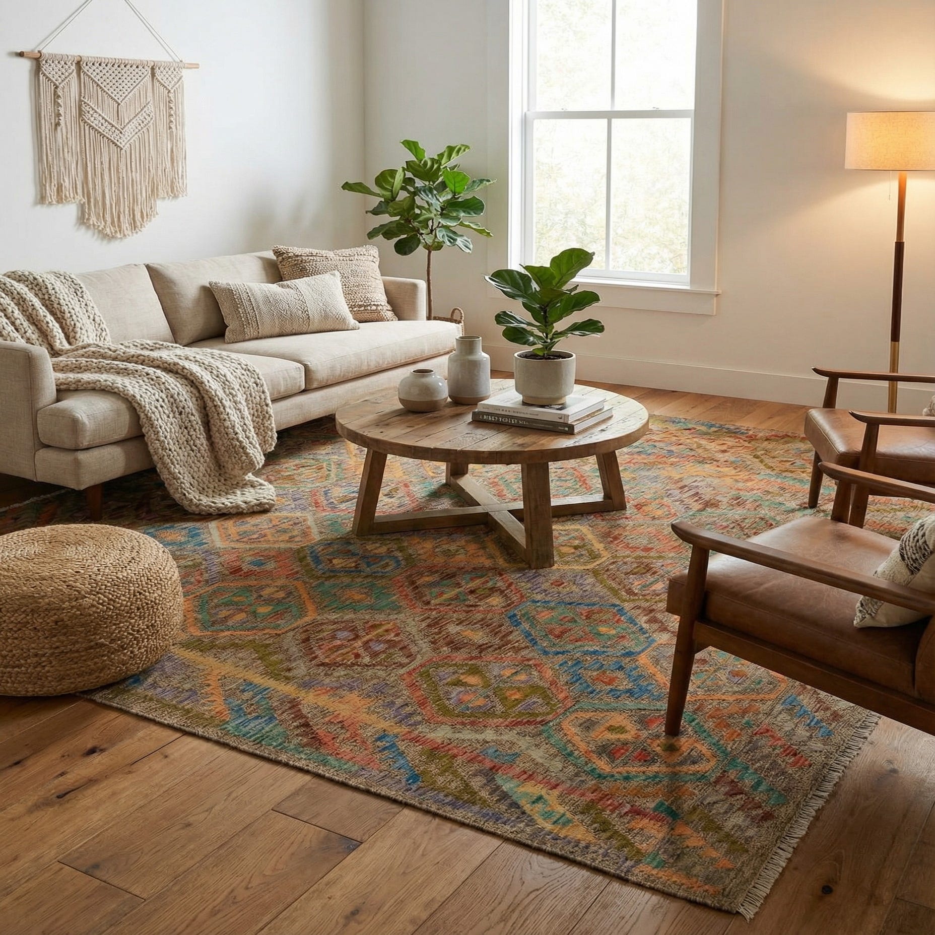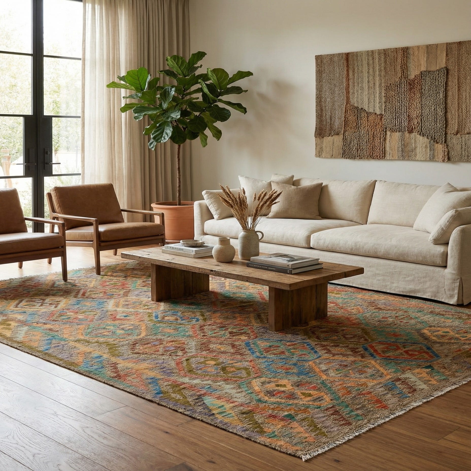 6' 7 x 8' 4 Hand Woven Kilim Modern Wool Rug