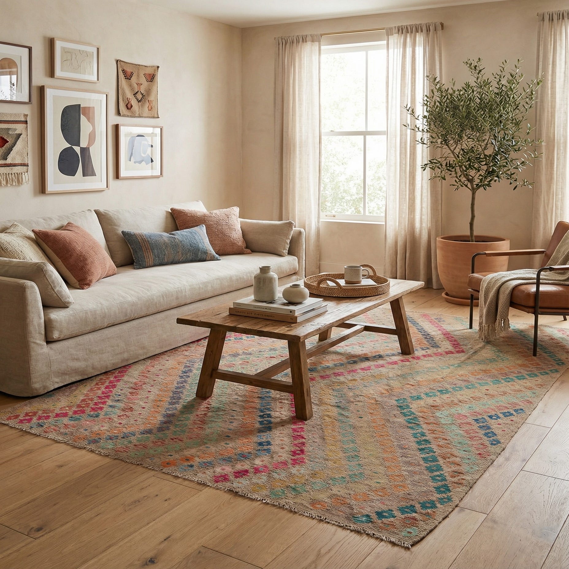 6' 9 x 8' 3 Hand Woven Kilim Modern Wool Rug
