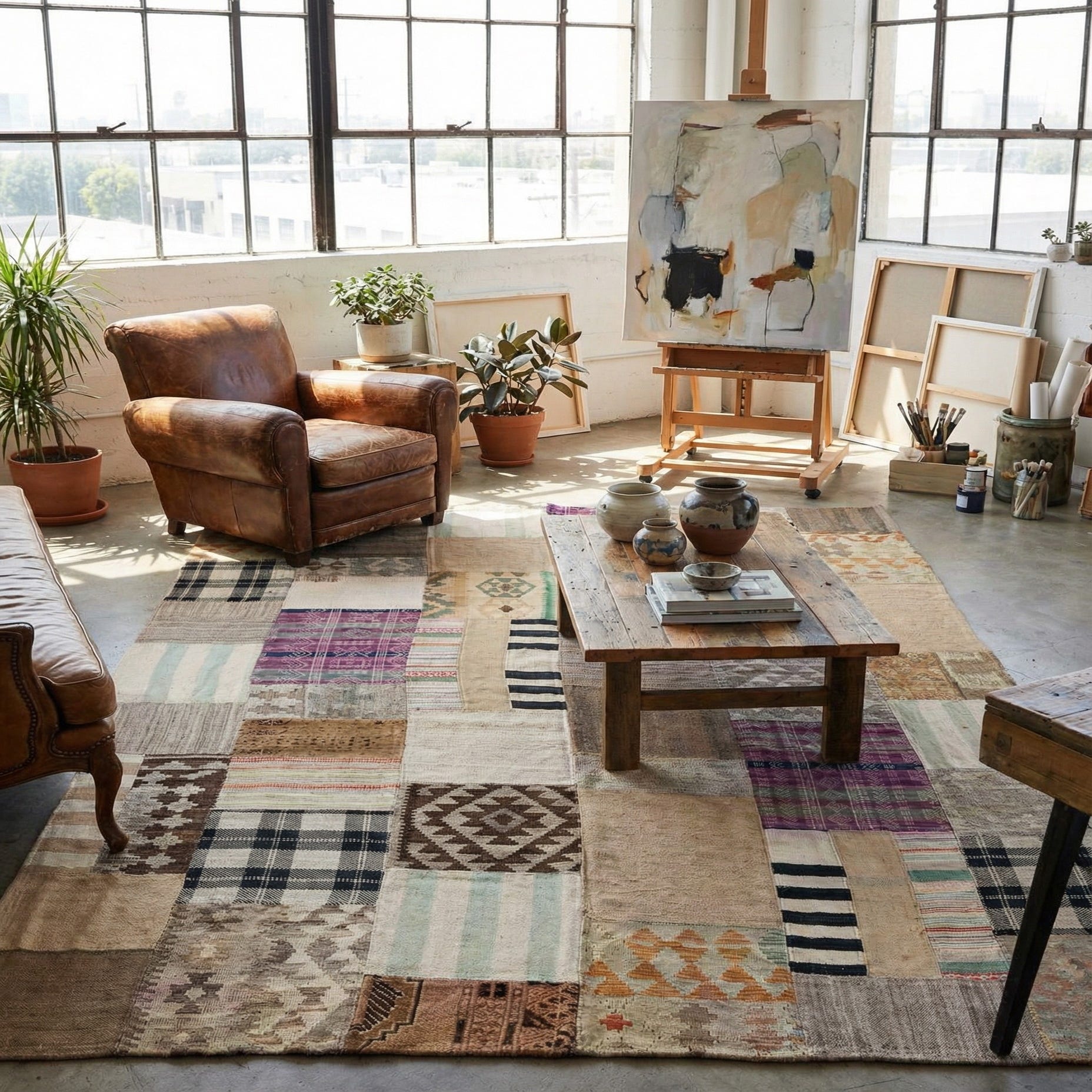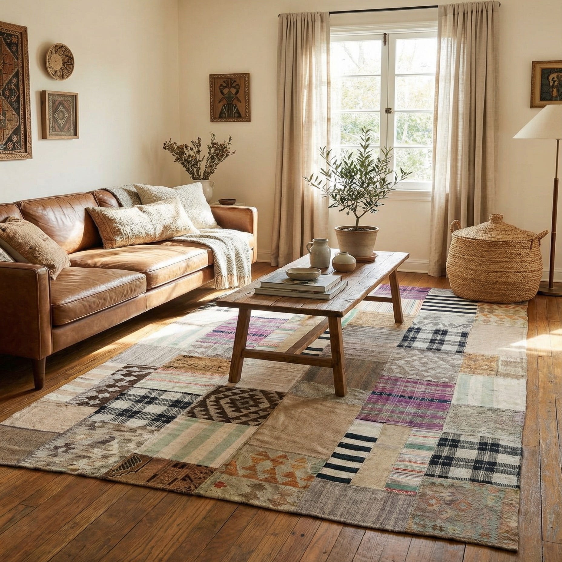 6' 5 x 9' 7 Hand Woven Kilim Patchwork Wool Rug