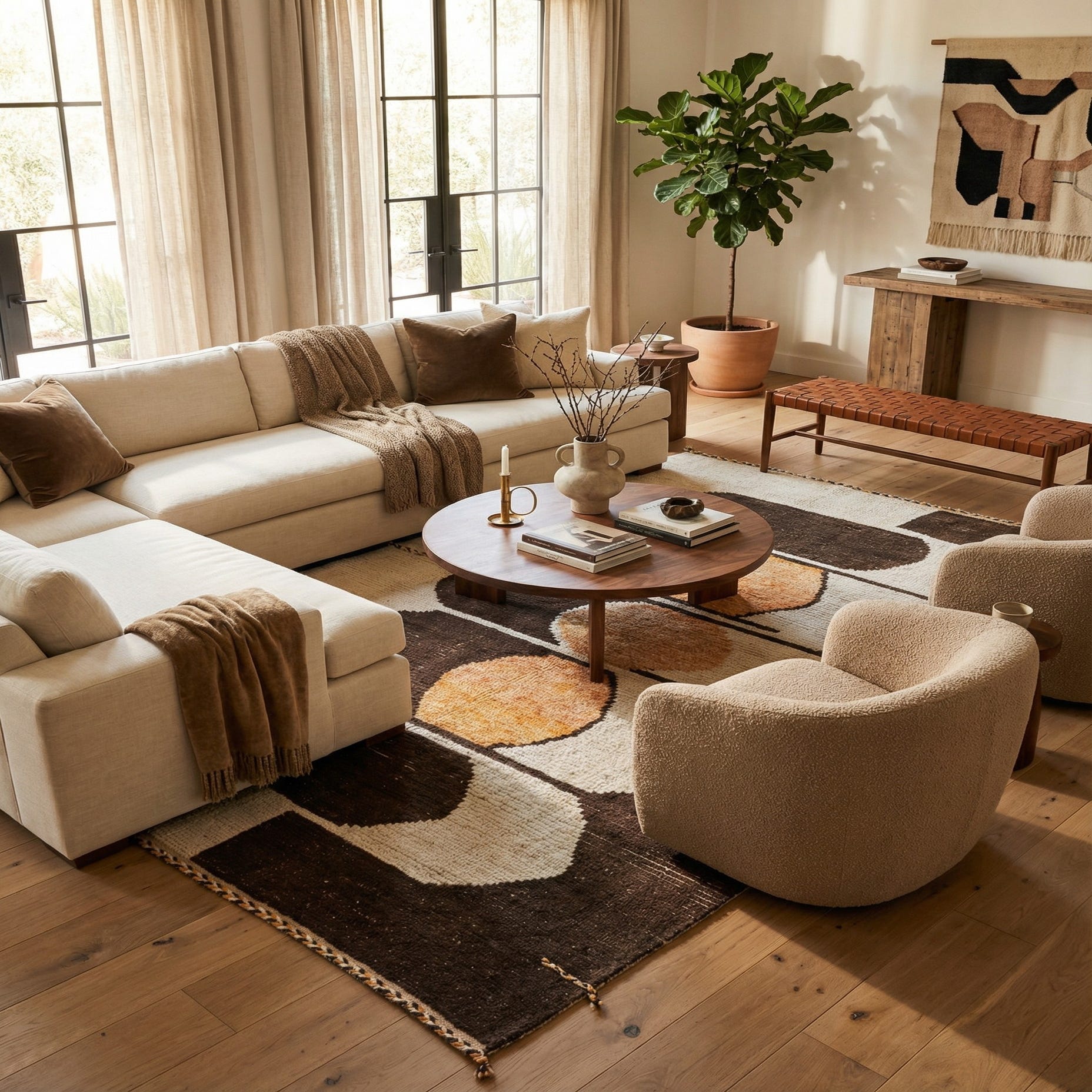 Primary color is Multi. Colors in this rug include: Multi, Beige, Brown, Orange.